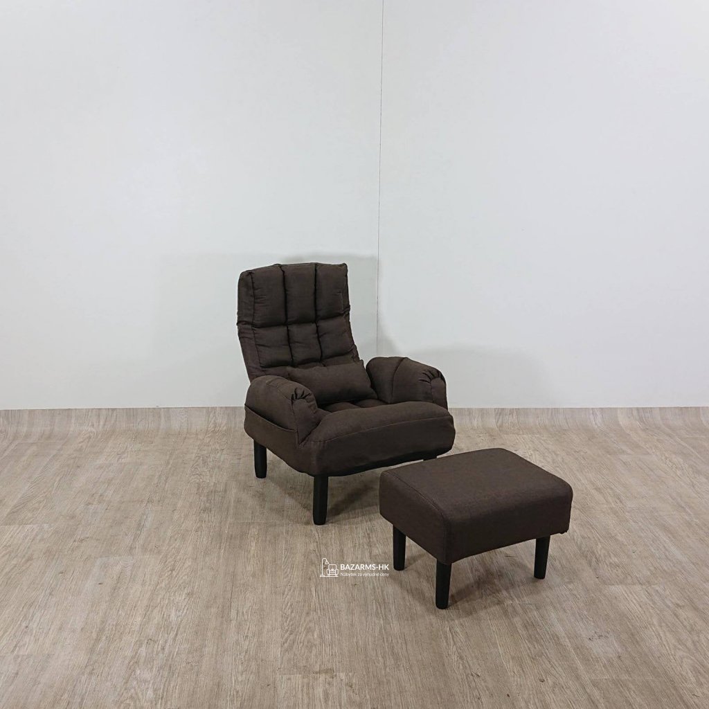 Látkové polohovací křeslo s taburetem hnědé OLAND II.
