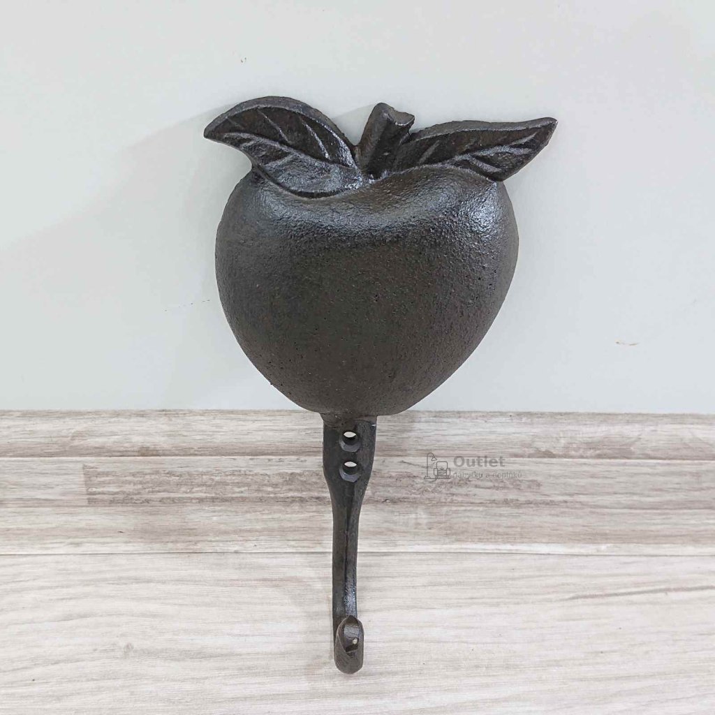 Kovový háček na stěnu s motivem jablka můžete umístit do předsíně ale i třeba do zahradního domku, abyste si měli kam pověsit pracovní oděv nebo zástěru.