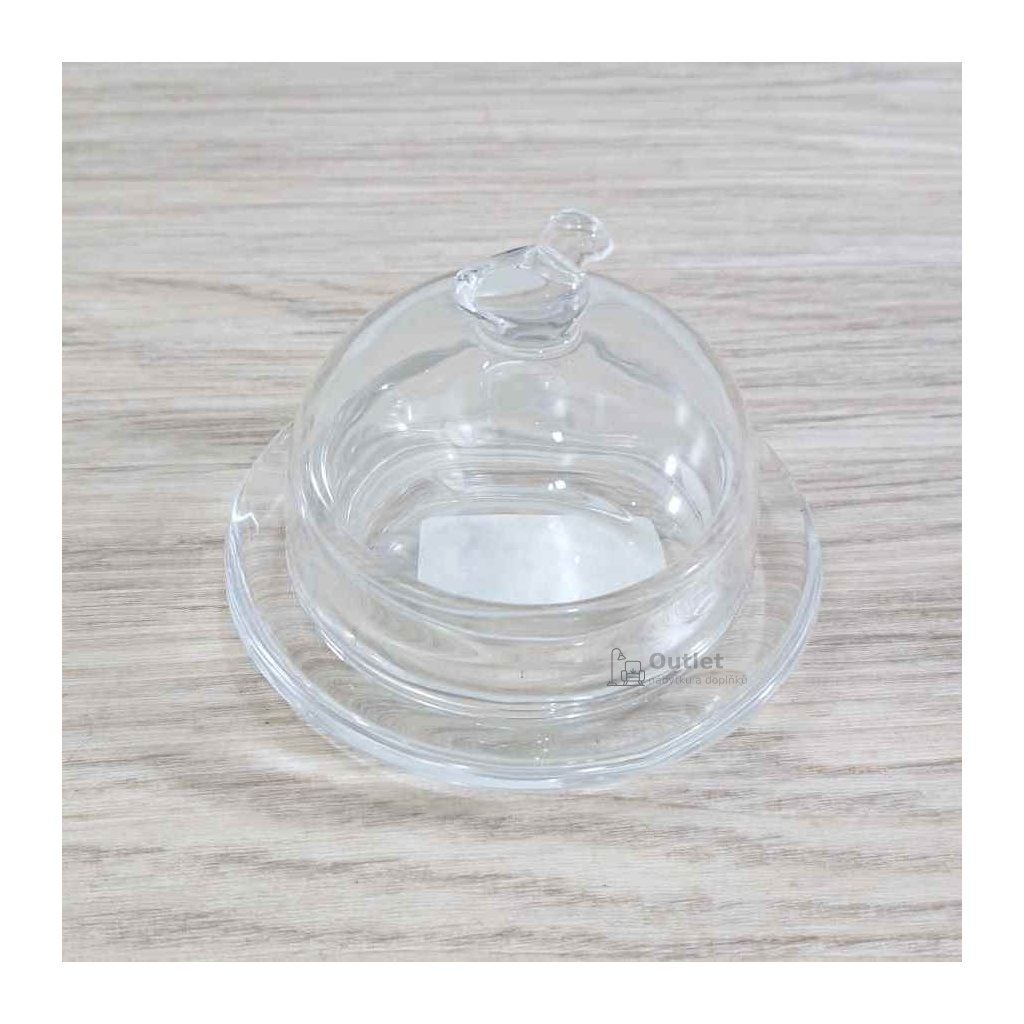 Roztomilá skleněná máslenka s kuřátkem jako úchytka.
