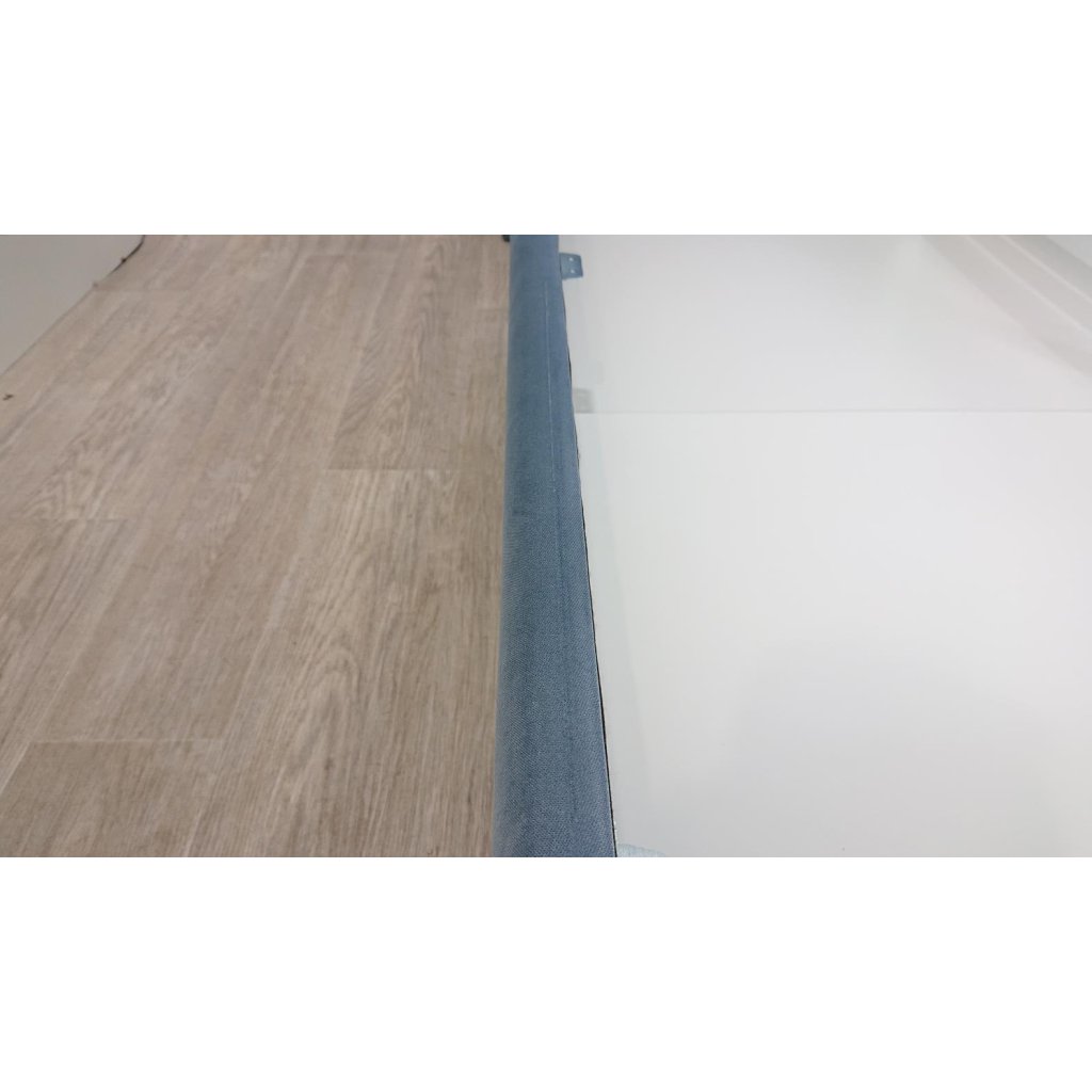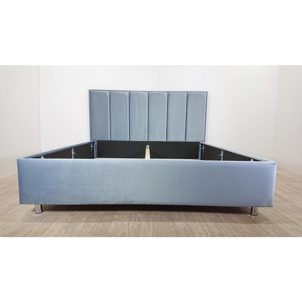 Modrošedá dvoulůžková postel s roštem a úložným prostorem ProSpánek Wega, 180 x 200 cm.