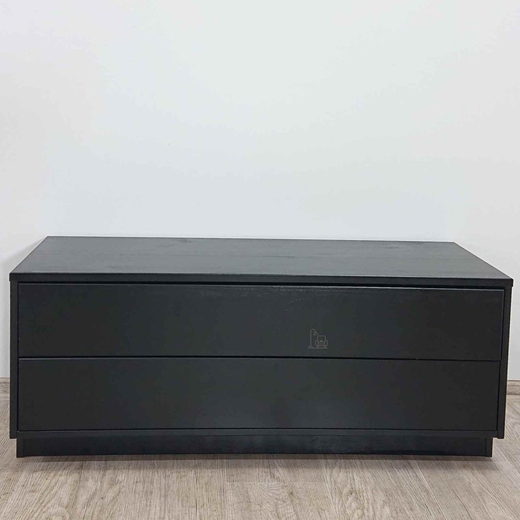 TV skříňka z borovicového dřeva s dvěma šuplíky v černé barvě vhodná nejen pod televizi. Zásuvky mají push-to-open otevírání.