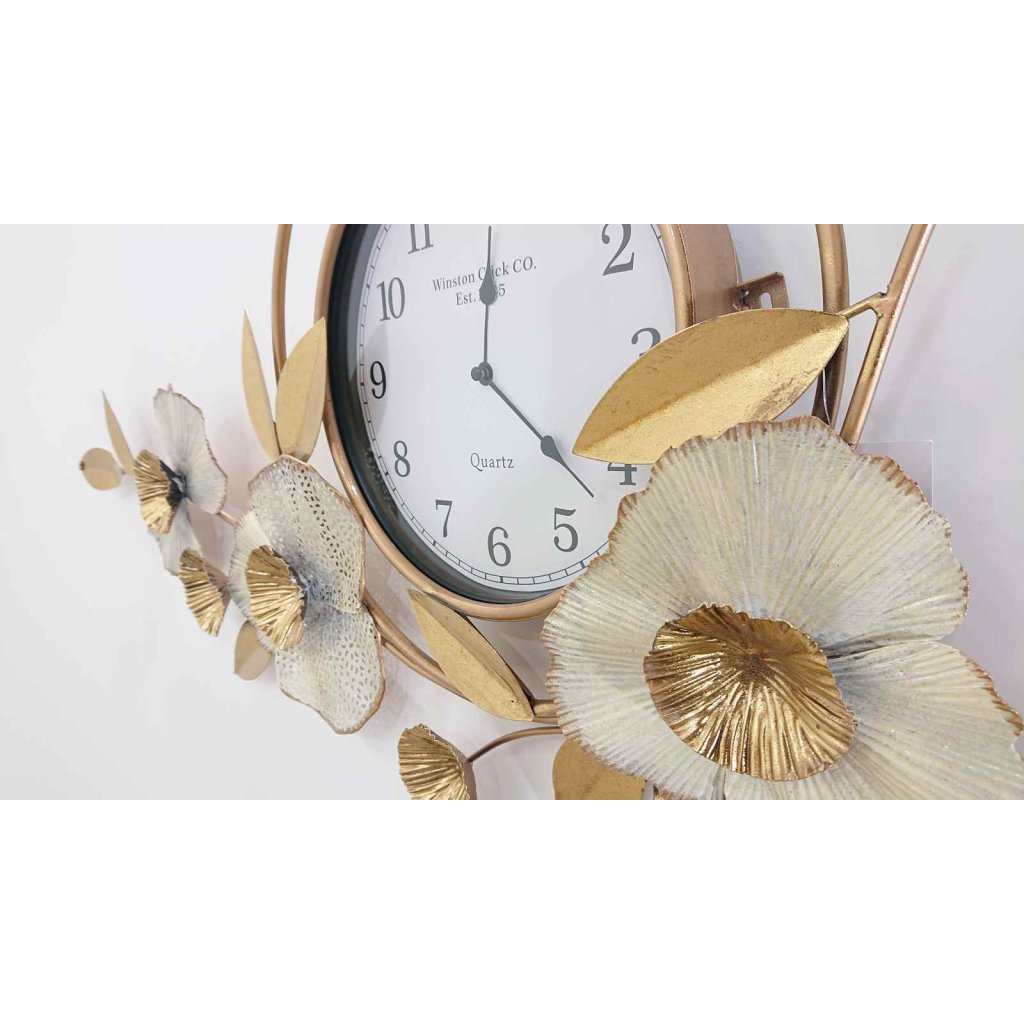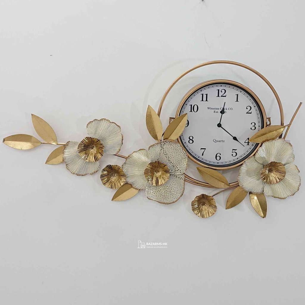 Úžasná dekorace na stěnu, která doslova hýří elegancí. Hodiny mají rám a květiny v bílé a zlaté barvě, zkrátka značka ideál pro milovníky moderního bydlení. Pověsit je můžete v obýváku nad sedačku, v ložnici nad postel i do předsíně.