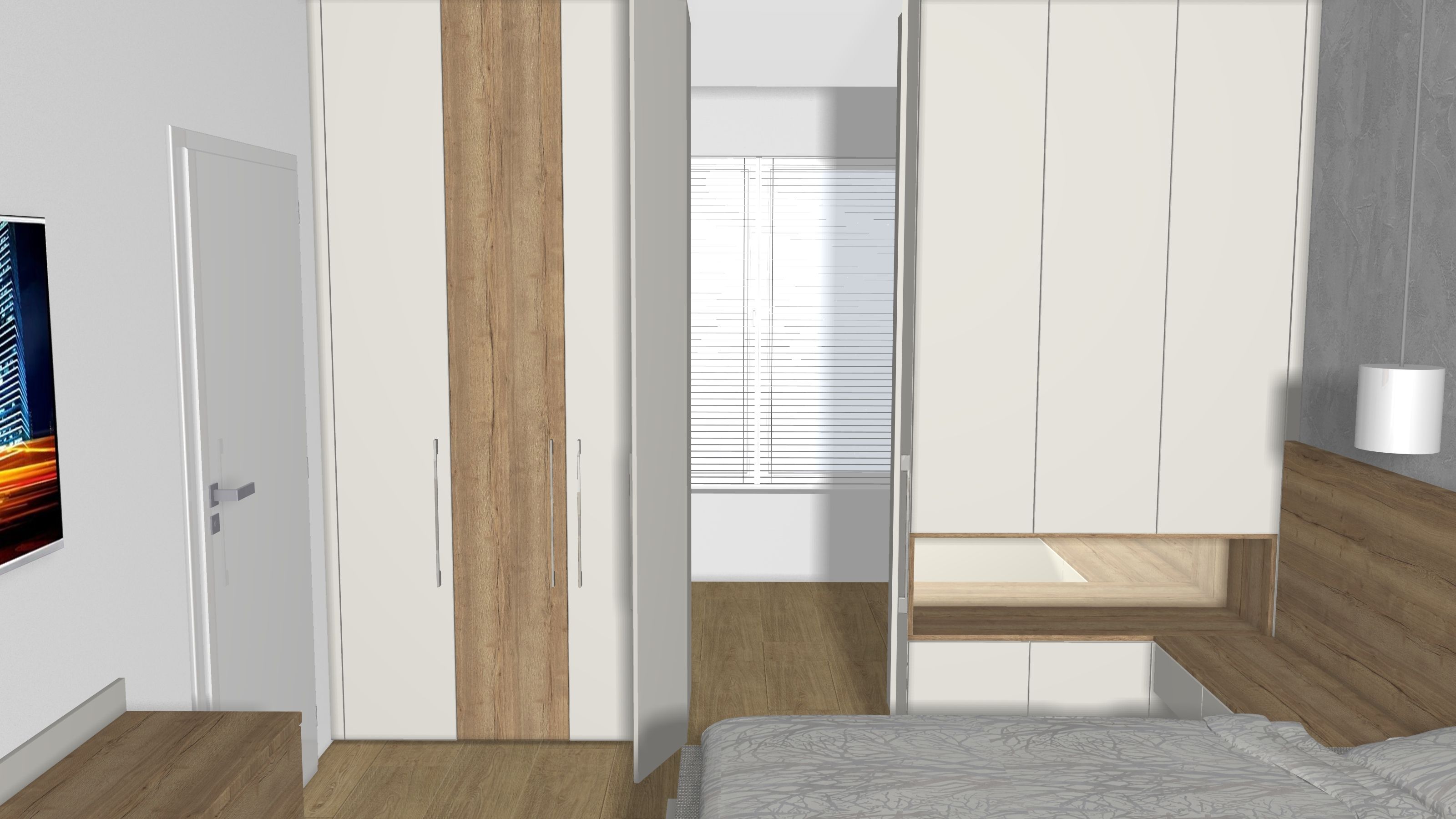 Ložnice je vhodným místem pro velkou vestavěnou skříň podél celé jedné stěny, do které uložíte jak běžně používané, tak i sezónní oblečení. Pokud máte dostatek místa, může mít skříň otevírací dvířka. Jestli ale bojujete s nedostatkem prostoru, zvolte posuvné dveře.