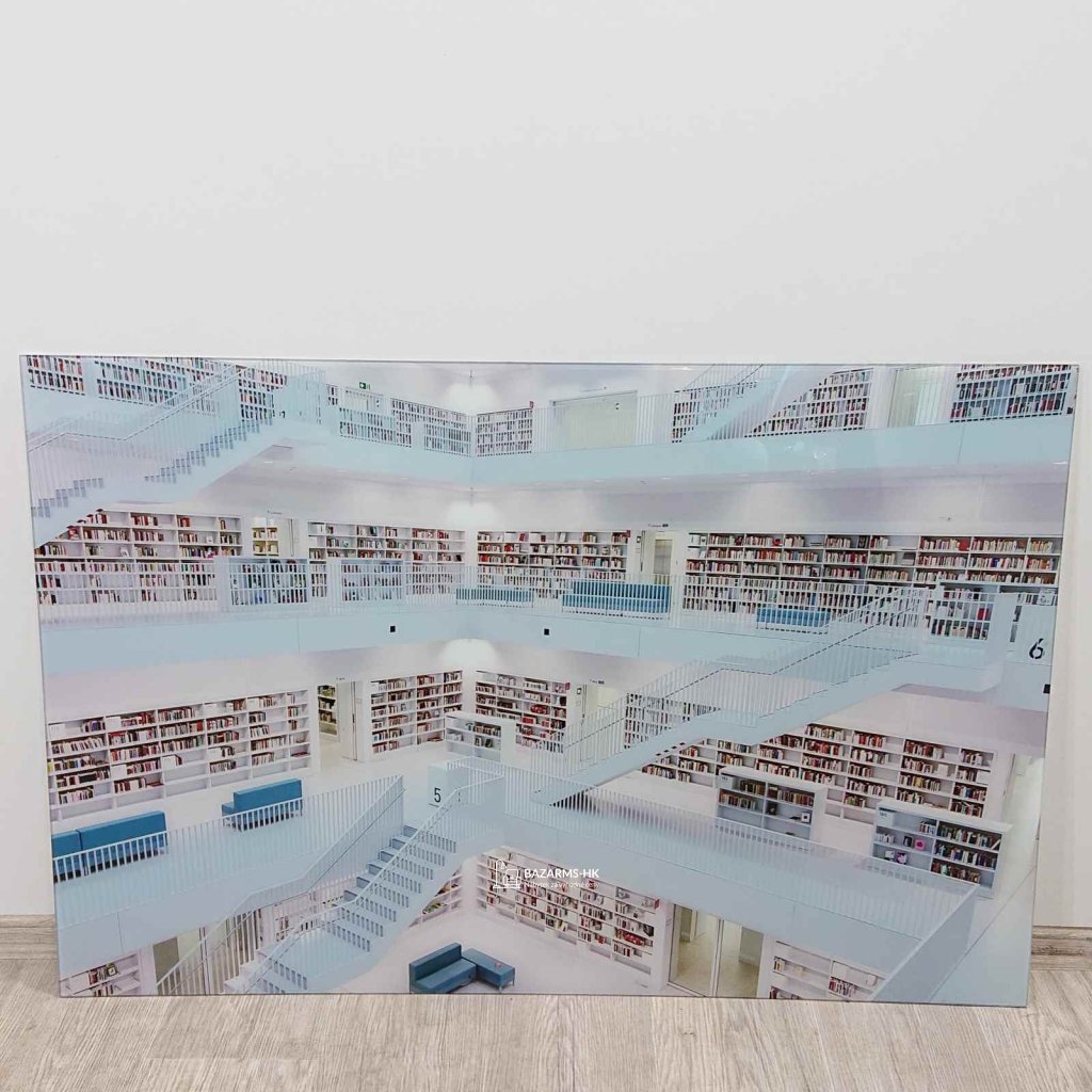 Velký skleněný obraz s několikapatrovou knihovnou. Obraz je vhodný nejen do bytu, můžete ho vystavit ve vstupní hale, v kanceláři nebo v čekárně.