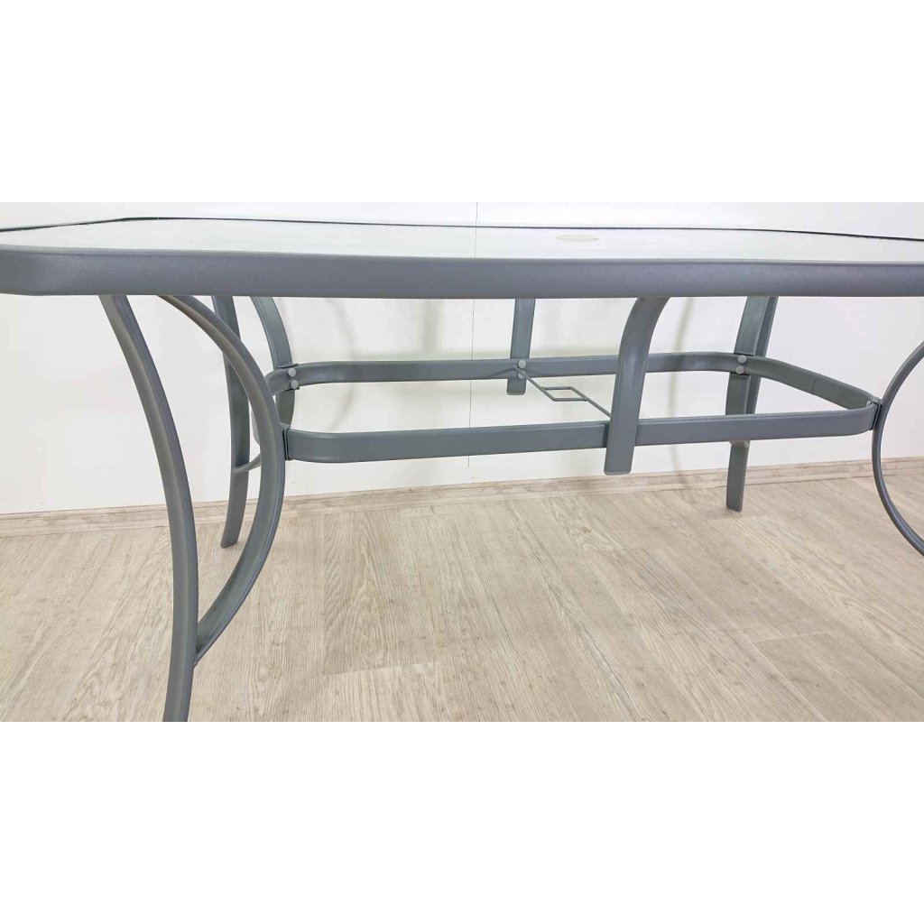 Zahradní stůl s kovovou konstrukcí a skleněnou deskou pro venkovní posezení s rodinou či přáteli. Zahradní stůl kovový snadno sladíte s ostatním vybavením zahrady nebo pergoly.