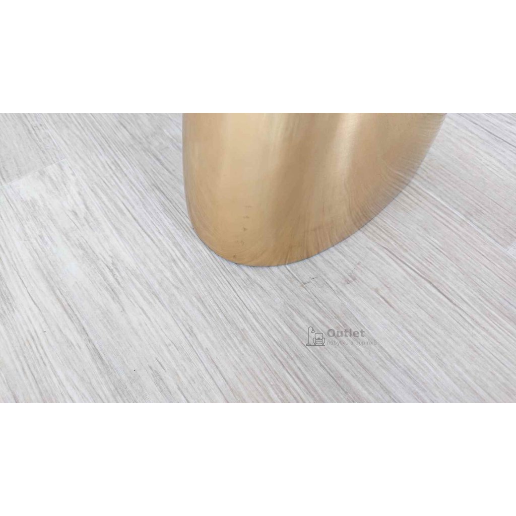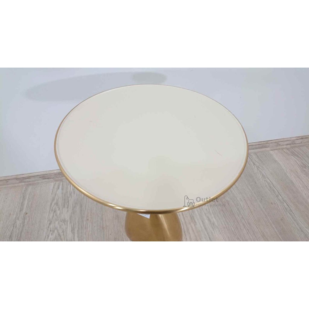 Designový odkládací stolek ve zlatí barvě umístěte vedle křesla nebo sedačky, abyste si vždy měli kam odložit šálek kávy, sklenku vína nebo brýle. netradičně řešený tvar zaujme na první pohled.