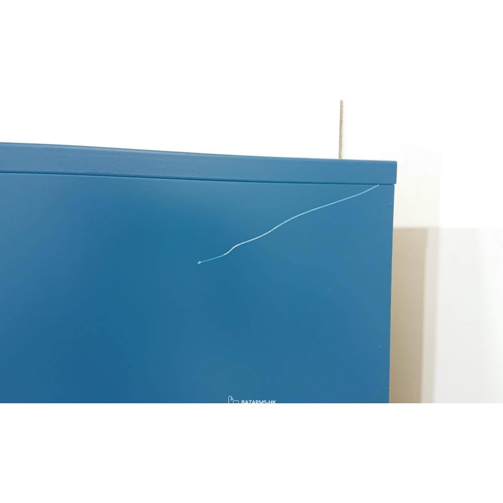 Petrolejově modrá police Tenzo Uno, výška 152 cm.