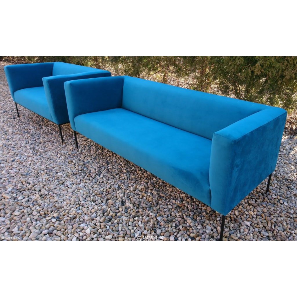 Světle modrá dvojmístná pohovka Windsor & Co. Sofas Neptune. Že v jednoduchosti je krása platí u pohovek této francouzské značky dvojnásob. Vyznačují se přímými rovnými liniemi. 145 x 76 x 79 cm.
