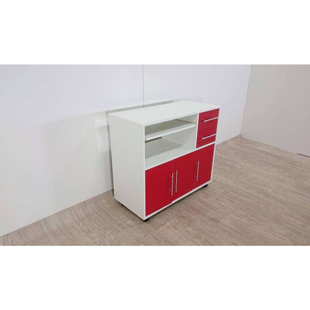 Červeno-bílý pojízdný kuchyňský úložný prostor s policemi TemaHome Marius.