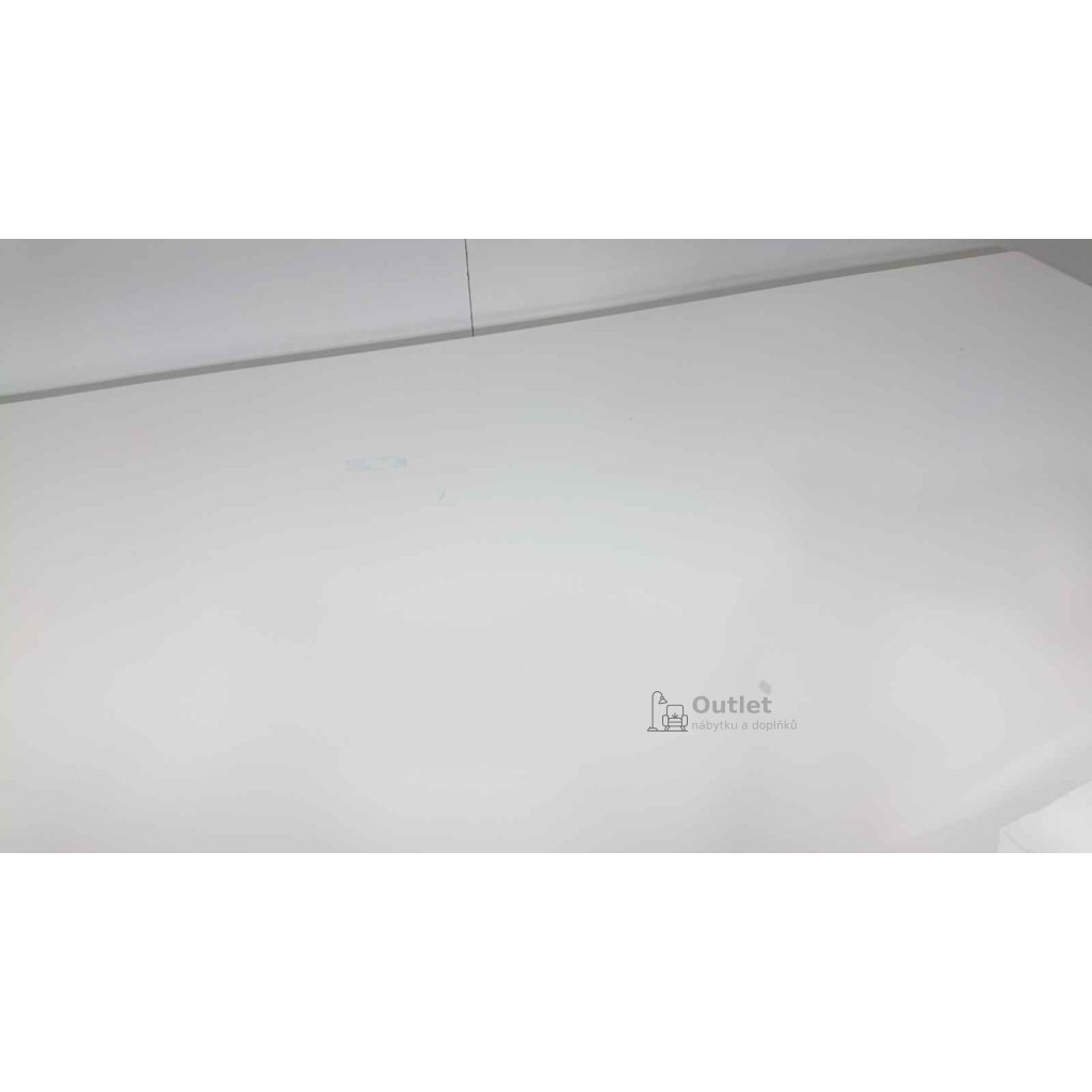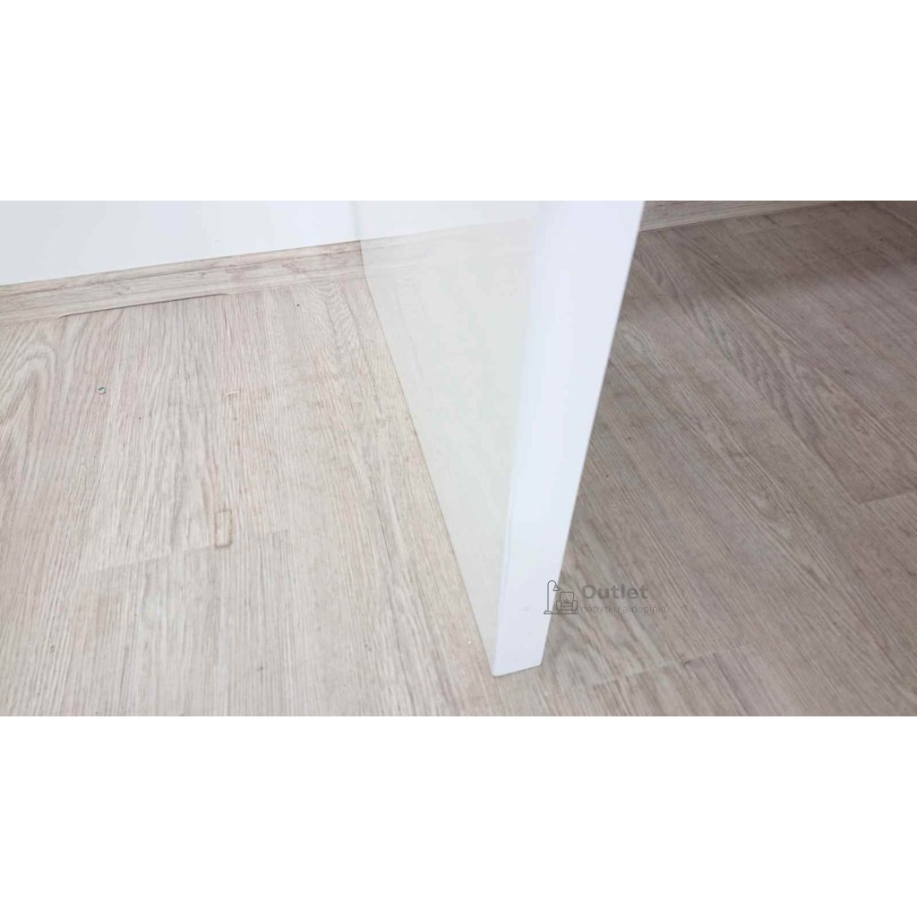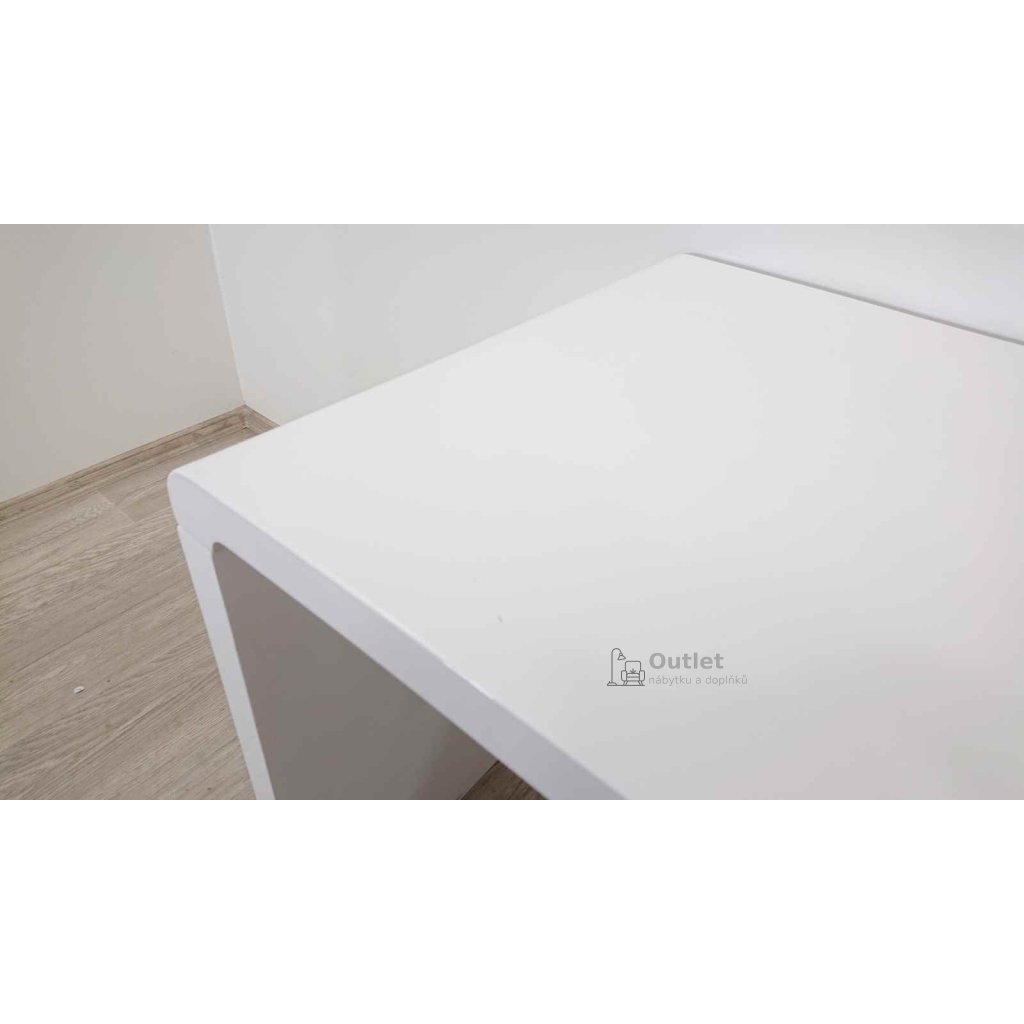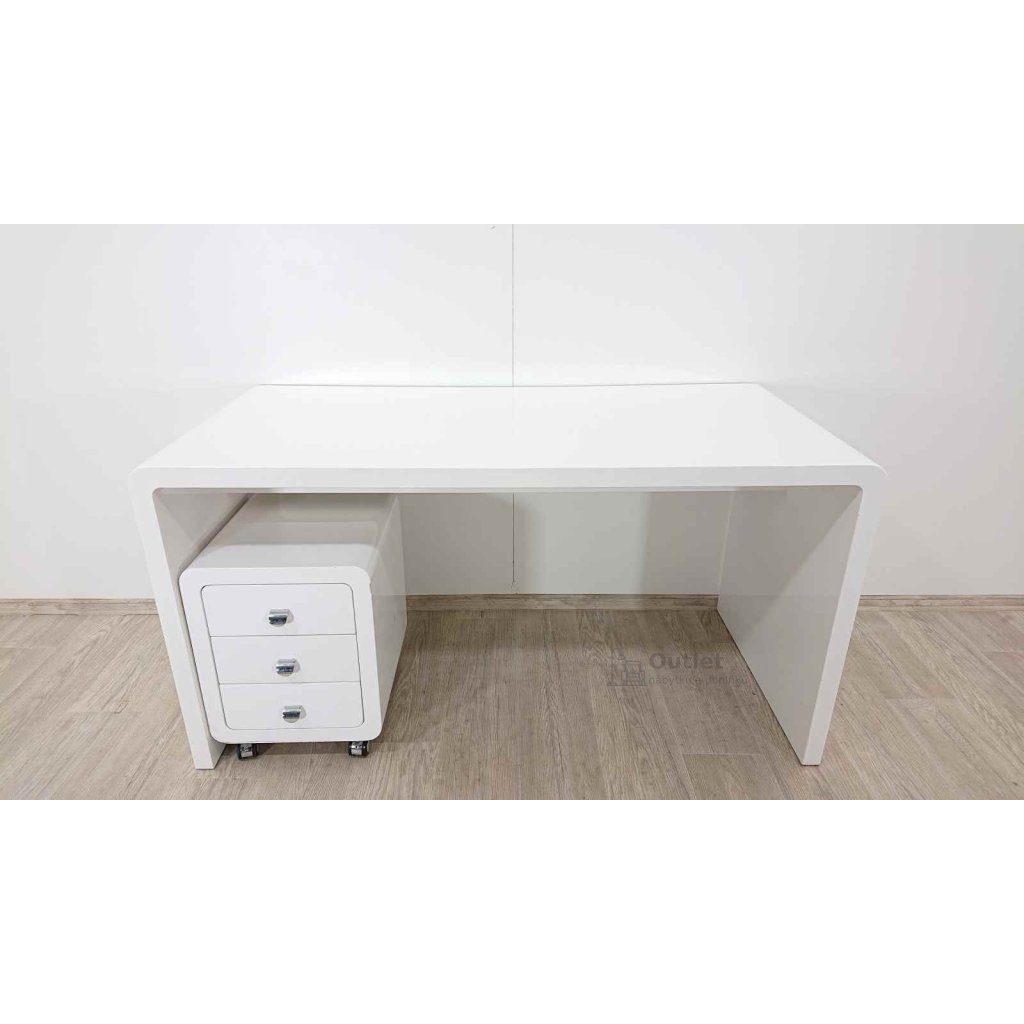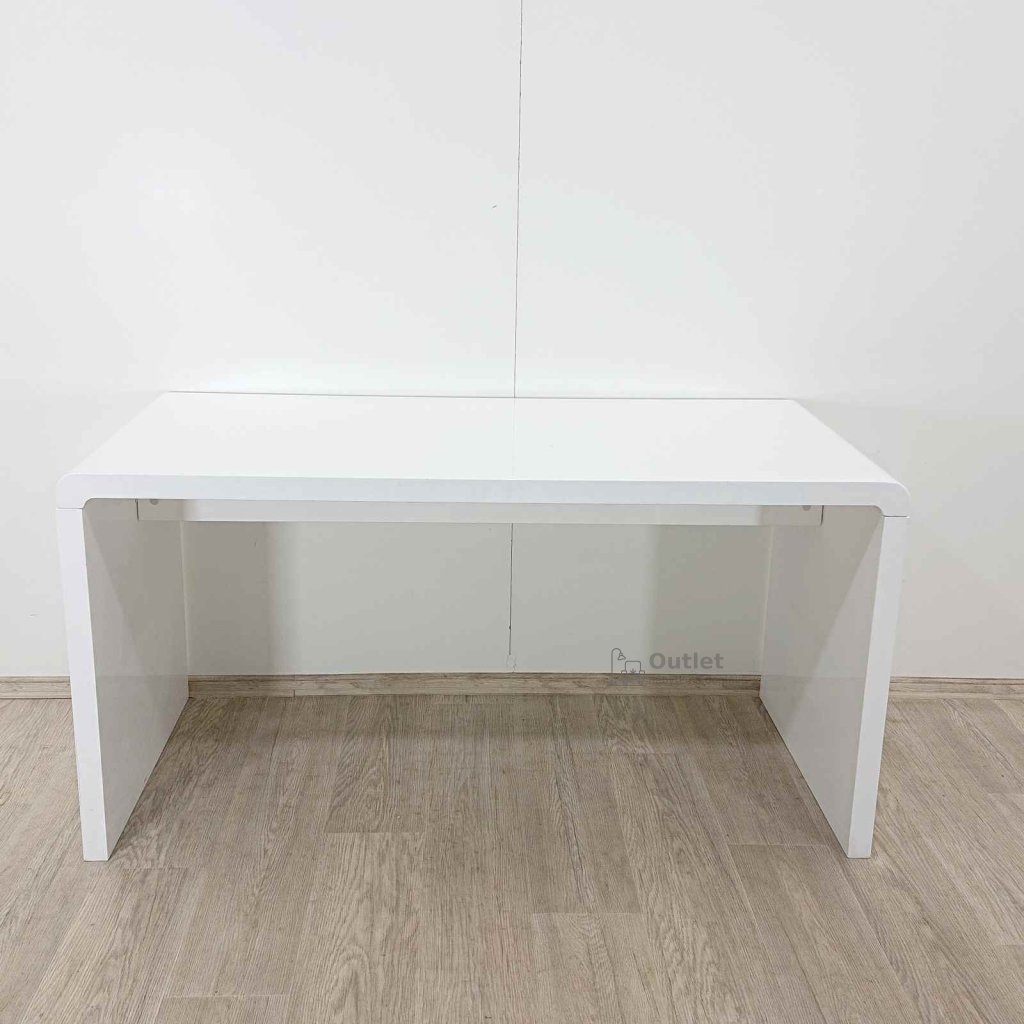 Lesklý bílý psací stůl, který se hodí do moderních kanceláří a pracoven. Jeho jednoduché provedení nijak nenaruší vzhled místnosti.