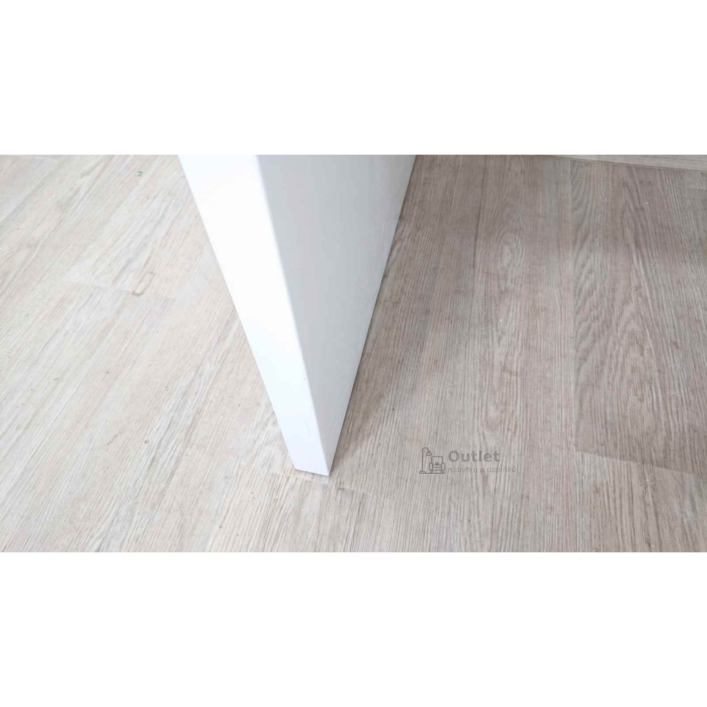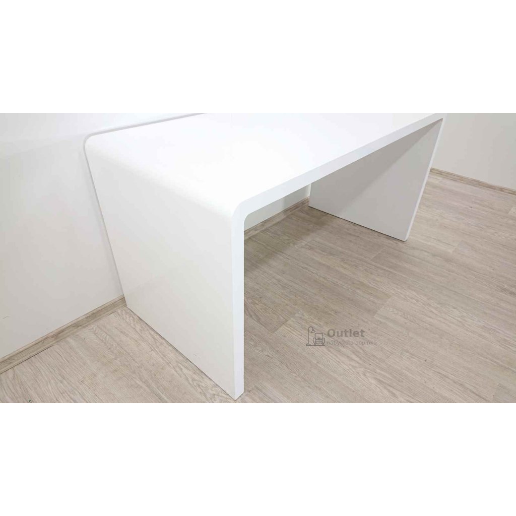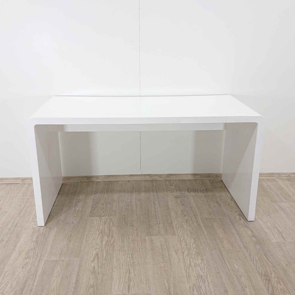 Lesklý bílý psací stůl, který se hodí do moderních kanceláří a pracoven. Jeho jednoduché provedení nijak nenaruší vzhled místnosti.