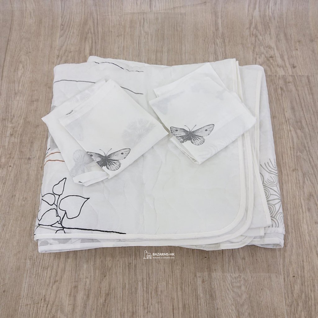 Elegantní přehoz přes postel se dvěma povlaky na polštářky.