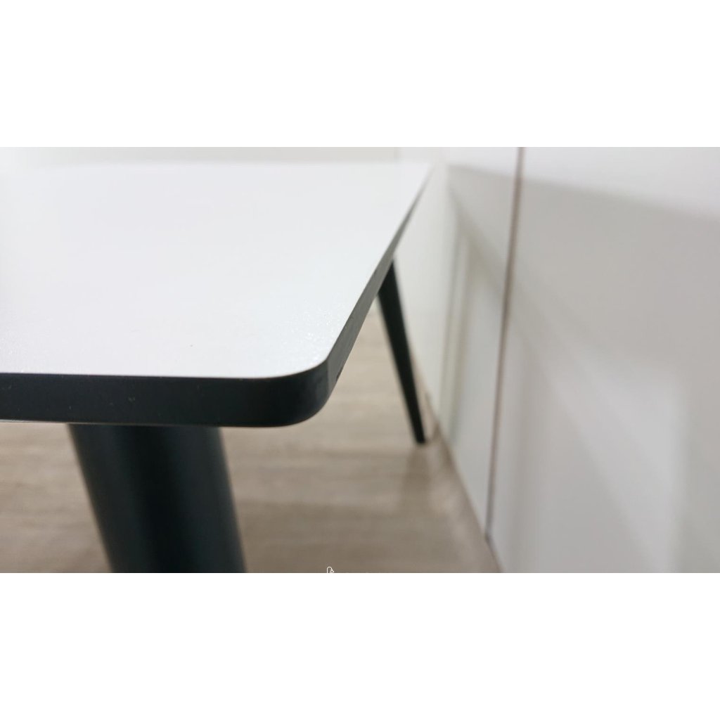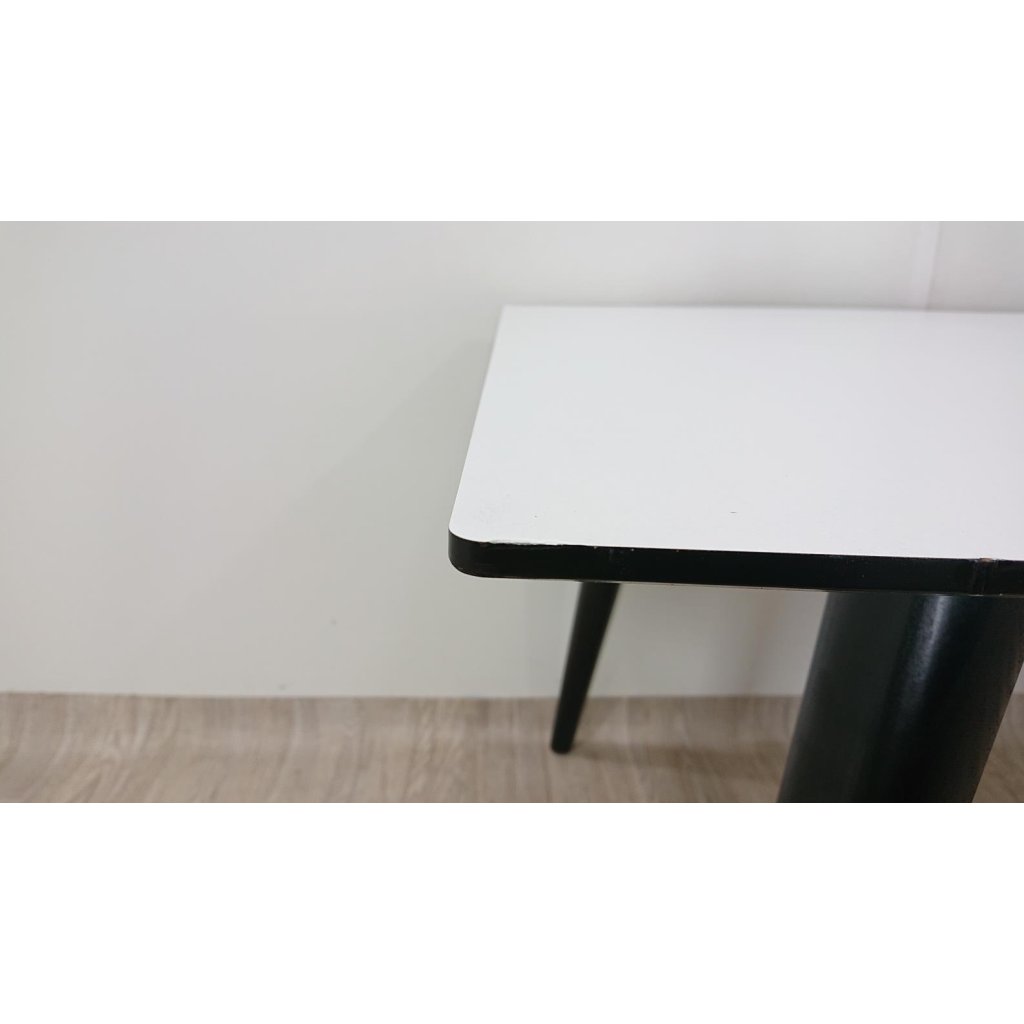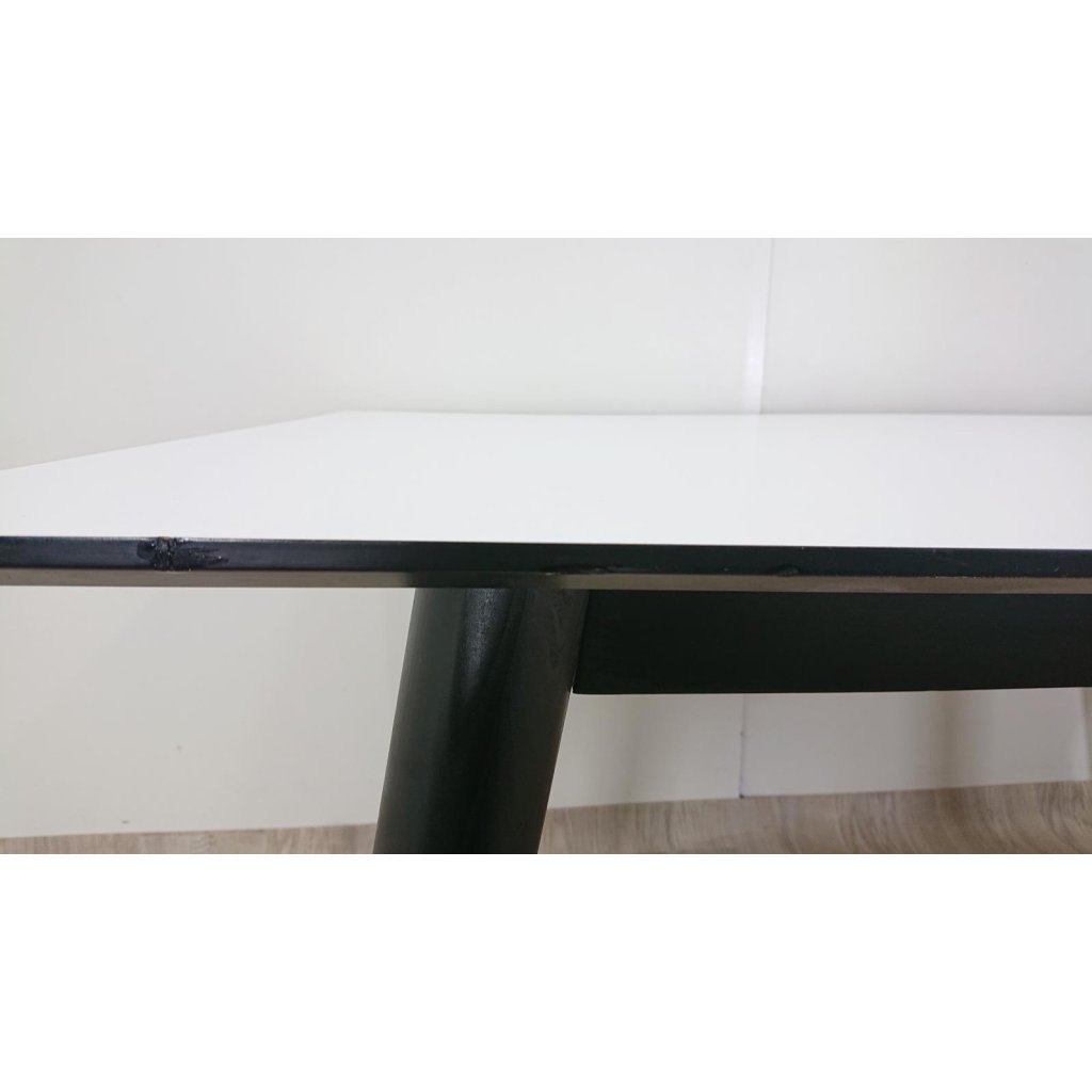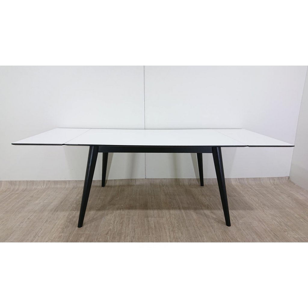 Jídelní rozkládací stůl v černo-bílém provedení.