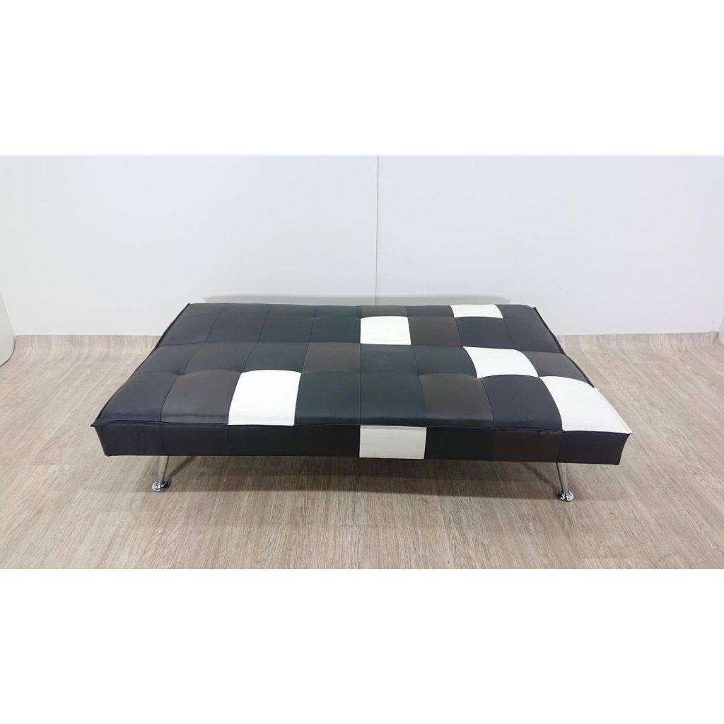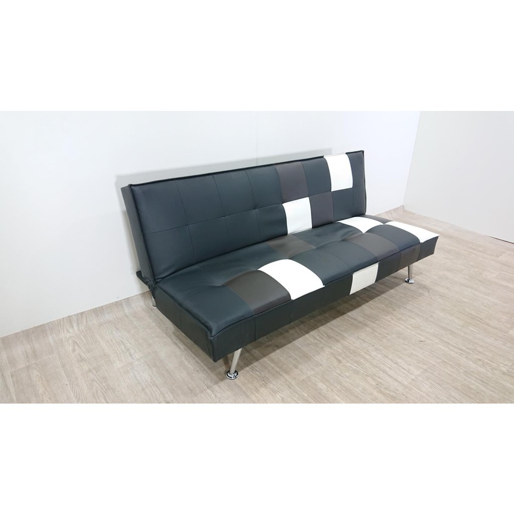 Rozkládací pohovka s ekokůže černá patchwork - OLSKER.