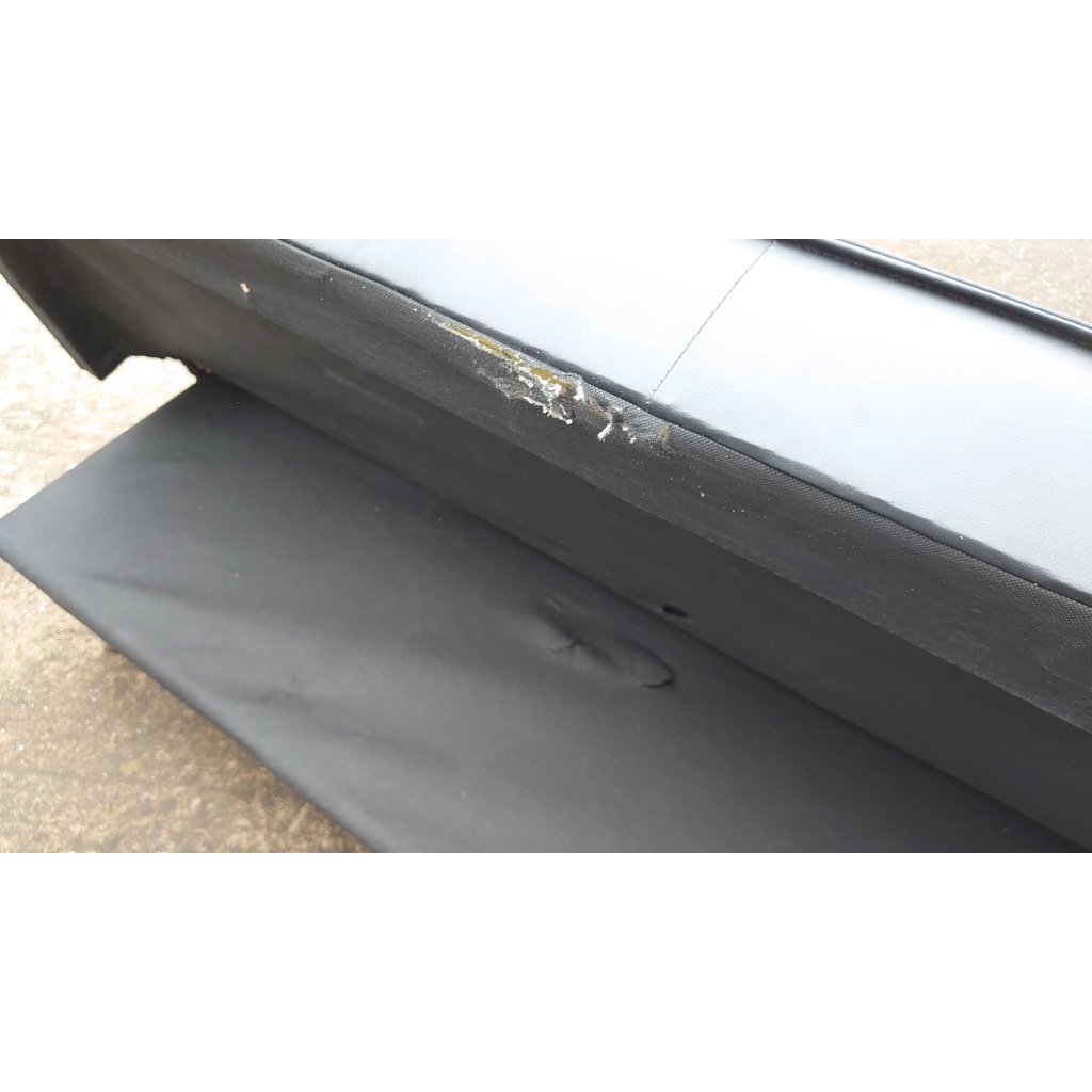 Nepoužité, drobná oděrka na sedací části, poškozená textilie zespodu, odřené na zadní straně.