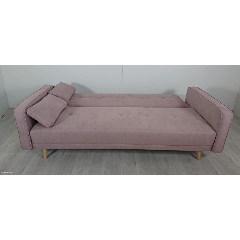 Růžová třímístná rozkládací pohovka Cosmopolitan Design Stuttgart. Pohodlná pohovka v jemném pastelovém odstínu s dřevěnými nohami. 212 x 85 x 93 cm (hloubka x výška x šířka).
