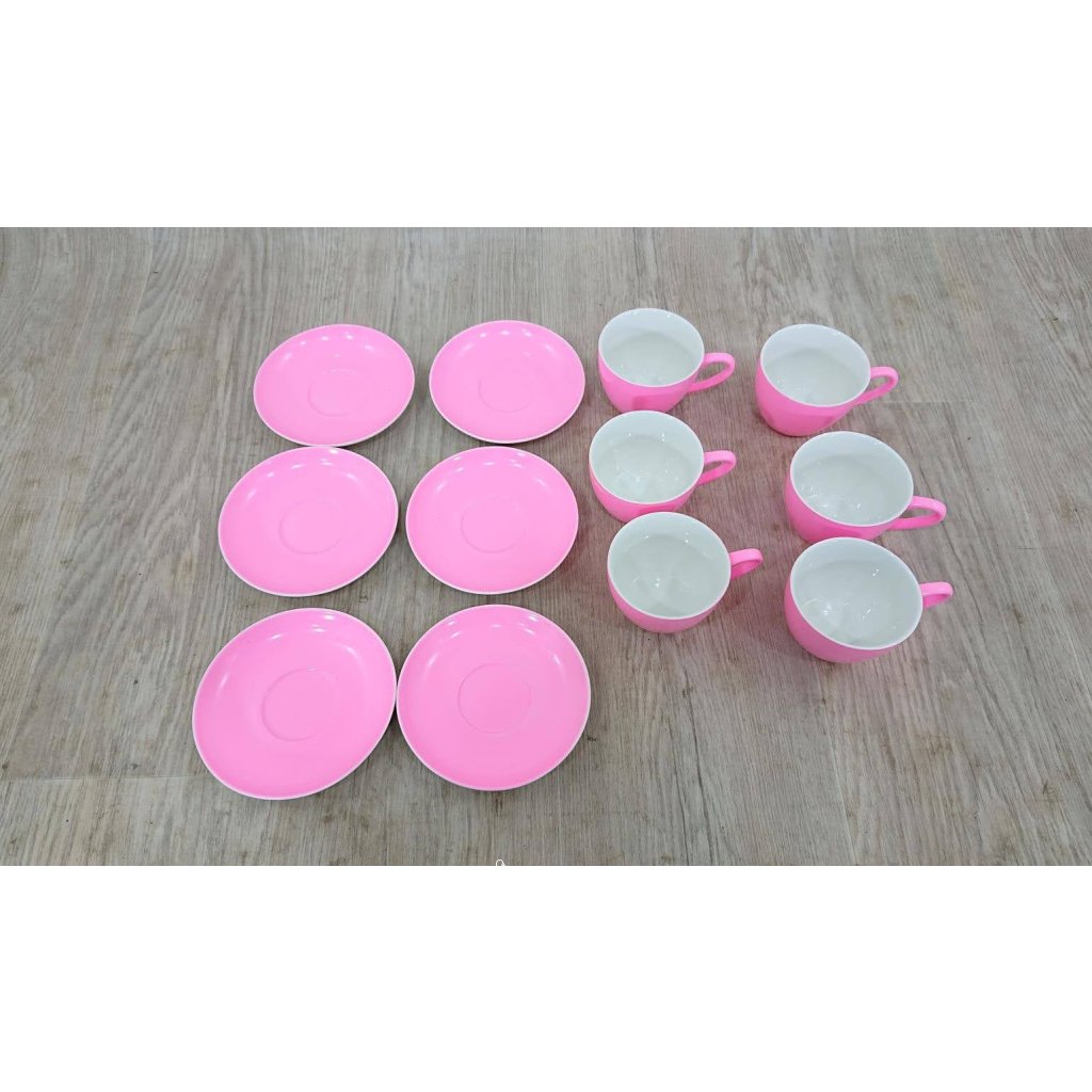 Sada 6 růžových porcelánových hrnků s podšálky Efrasia, 200 ml.