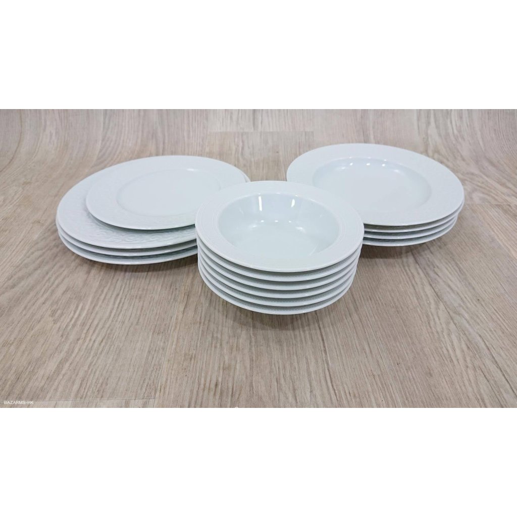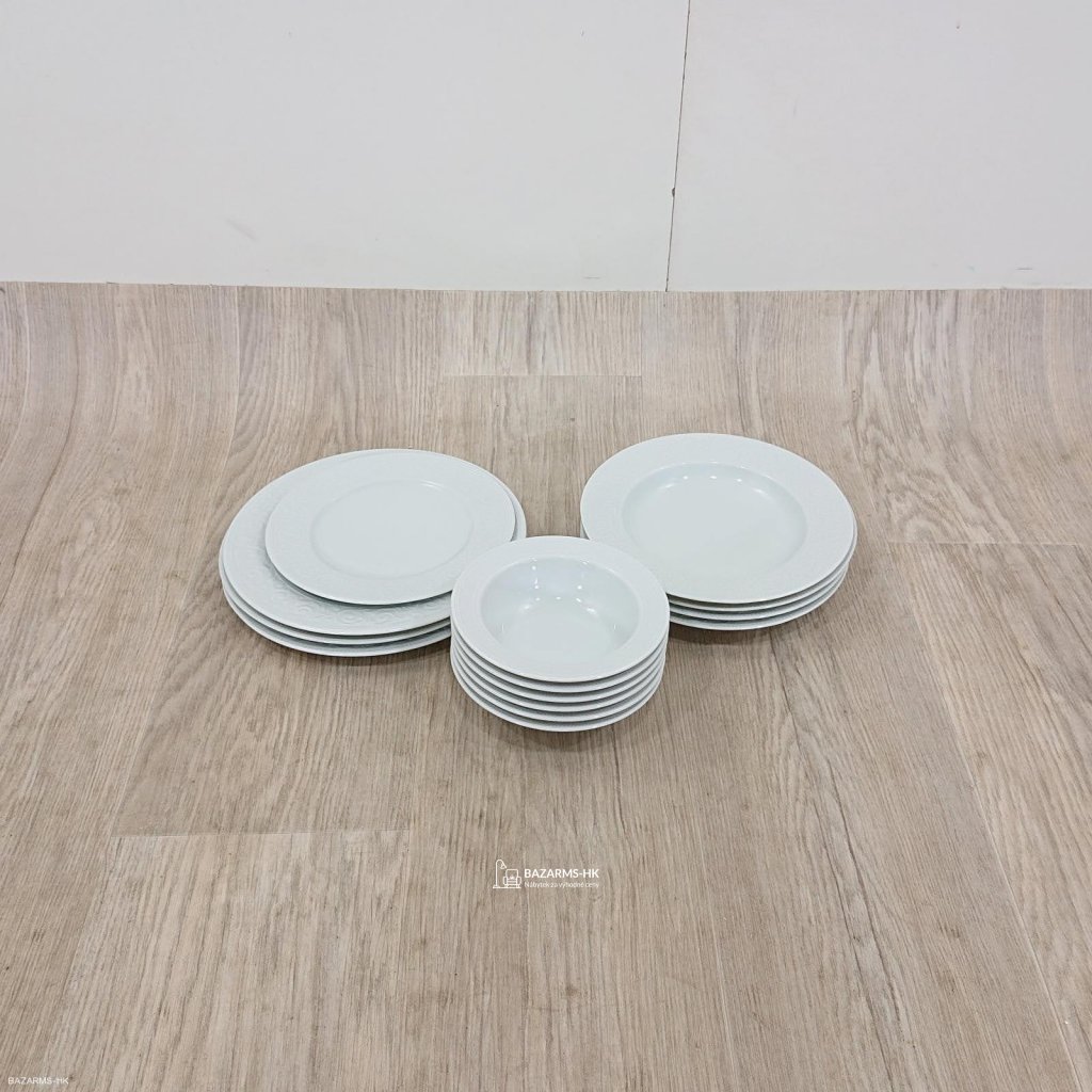 3x mělký talíř, 1x dezertní talíř, 4x polévkový talíř, 6x miska. Myjte ručně.
