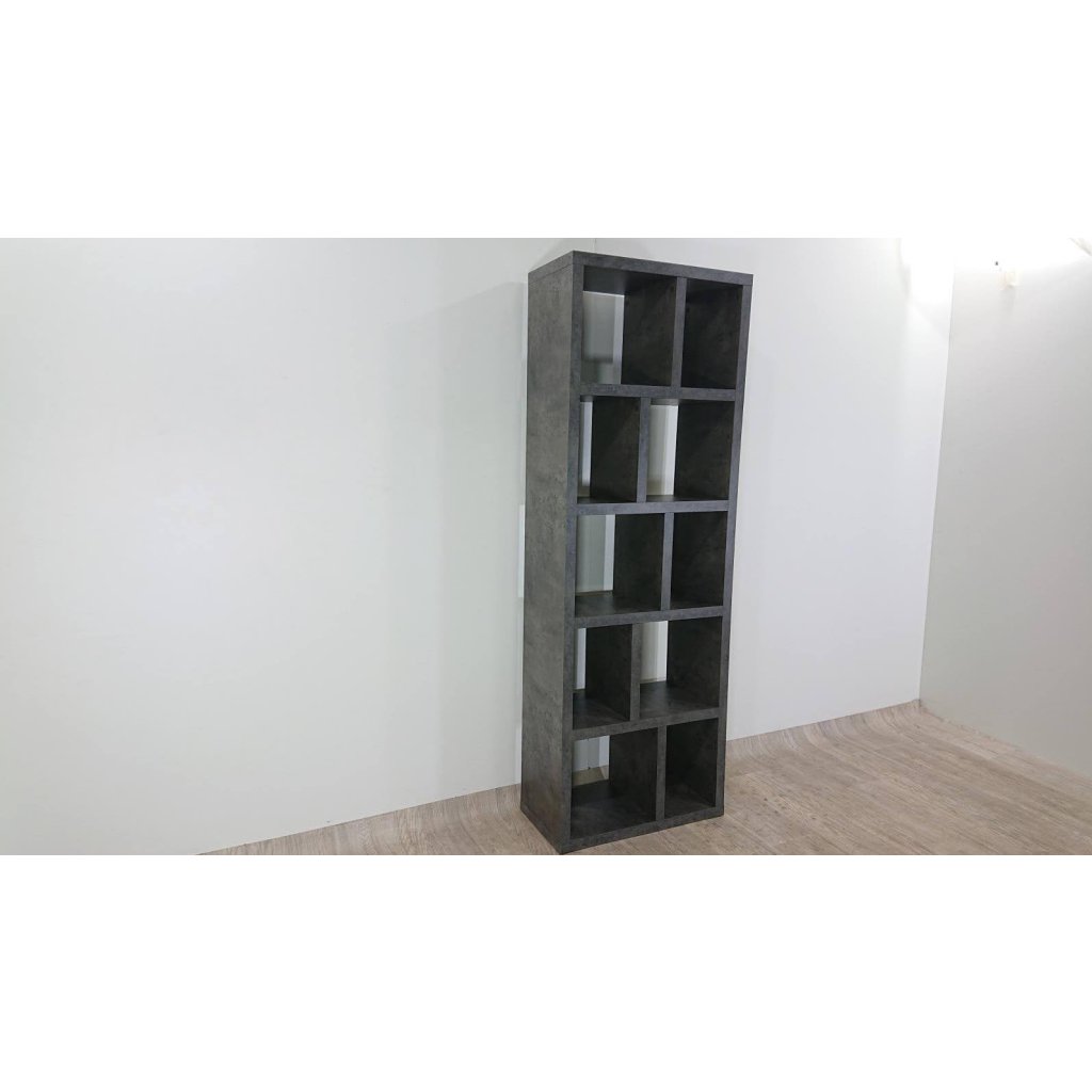 Šedá knihovna v betonovém dekoru TemaHome Berlin, výška 198 cm.