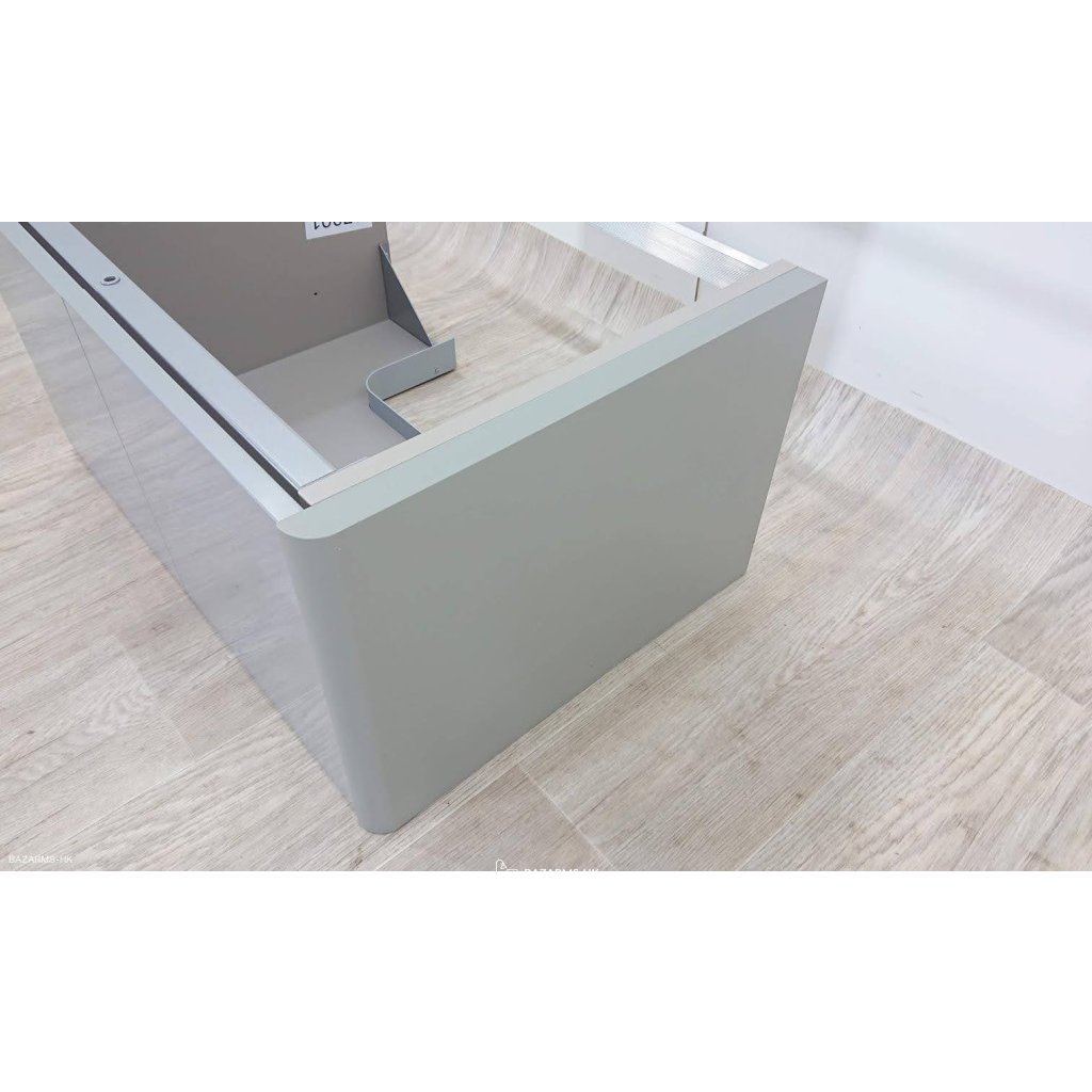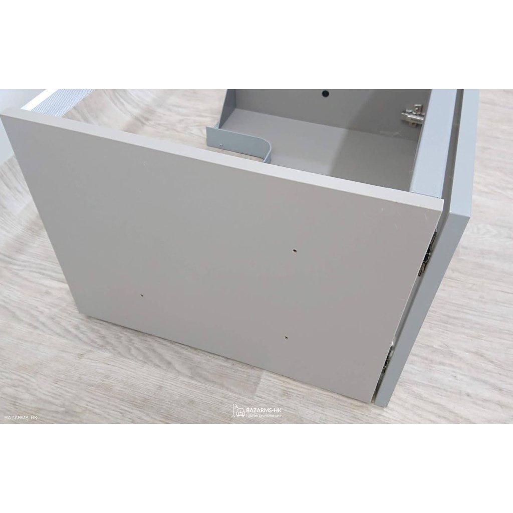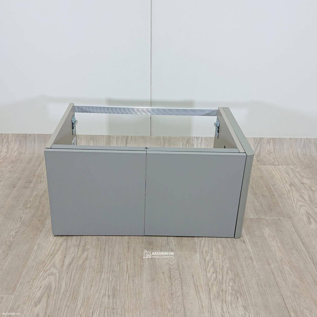 Šedá koupelnová skříńka pod umyvadlo. 73 x 50,5 x 36,5 cm (šířka x hloubka x výška), výkroj 35,5 x 17 cm, dotykové otevírání.