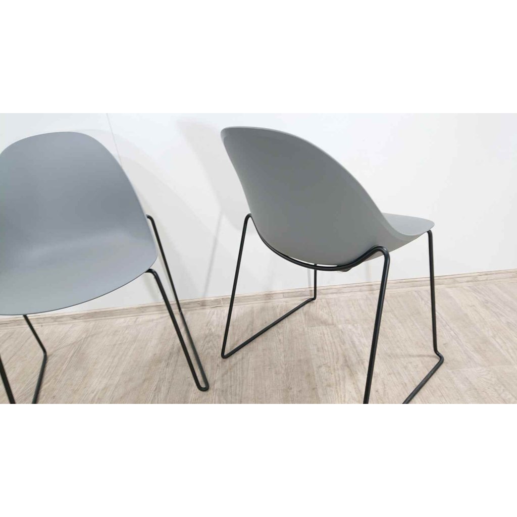 Šedé designové židle vhodné k jídelnímu stolu do obýváku či do kuchyně. Tyto jídelní židle jsou laděné do severského stylu. Mají plastový sedák a černé kovové nohy. Tento materiál je velmi snadný na údržbu, takže se nemusíte obávat nějakých nehod u stolu.