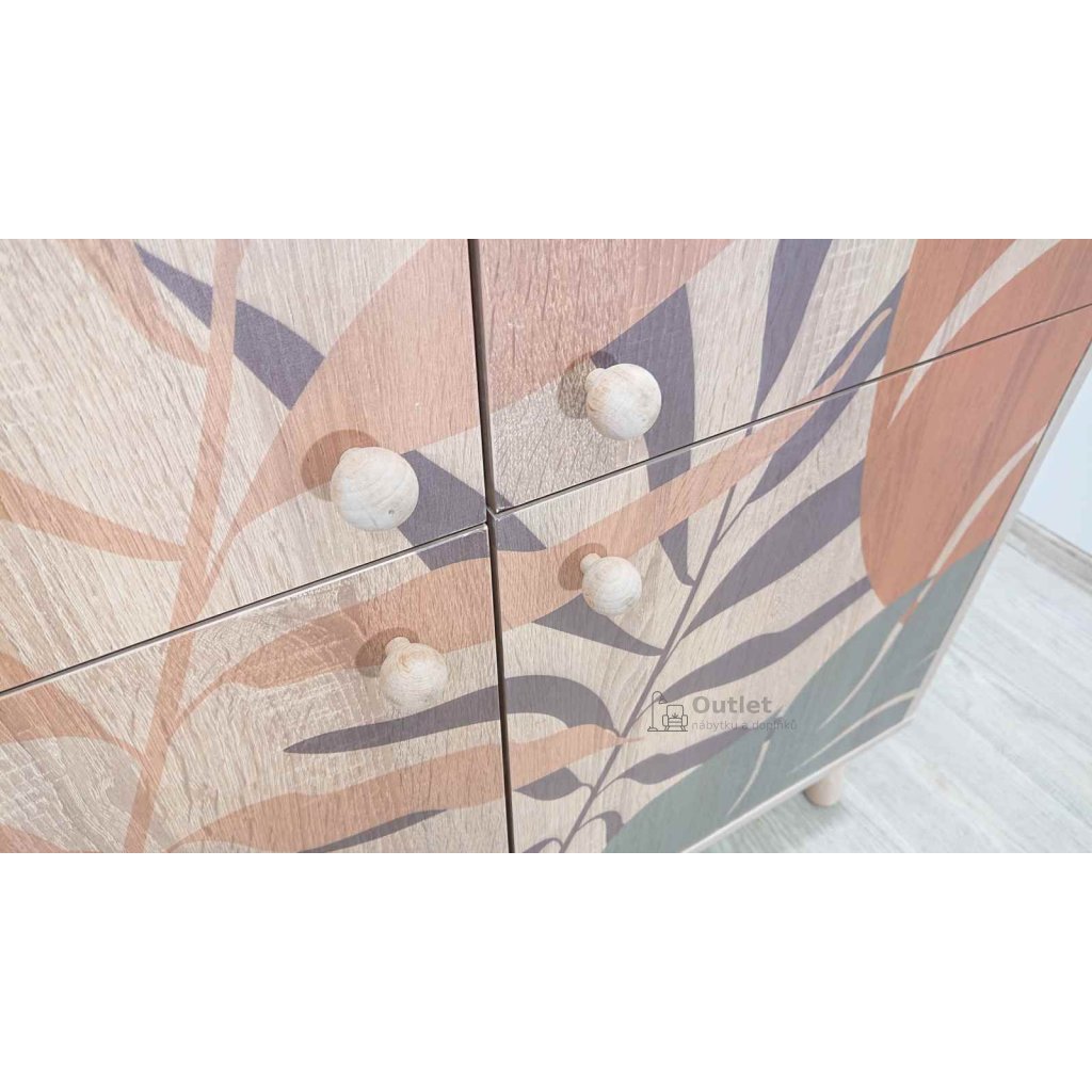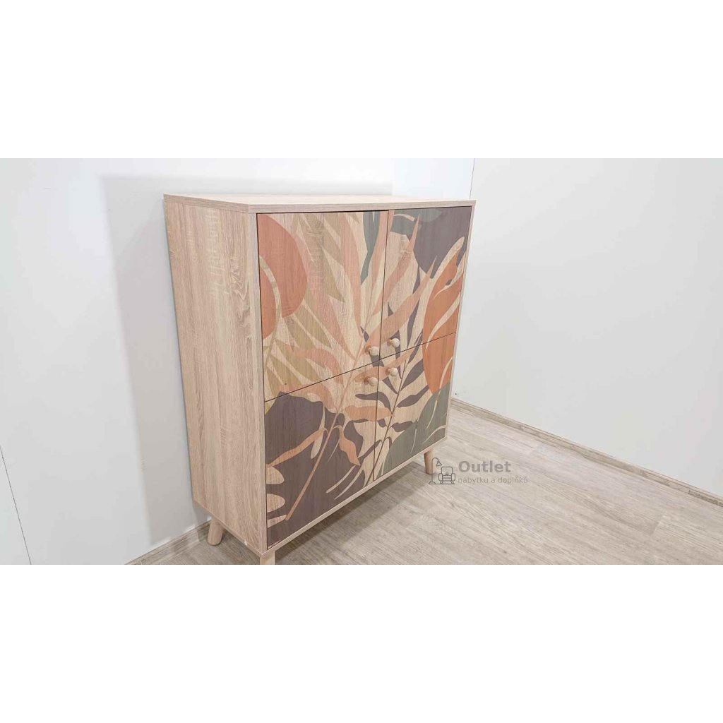 Nádherná skříňka s krásnými dvířky ozdobenými vzorem barevných listů. Skříňka má 4 dvířka, uvnitř jsou police. Hodí se do ložnice, předsíně i obývacího pokoje.