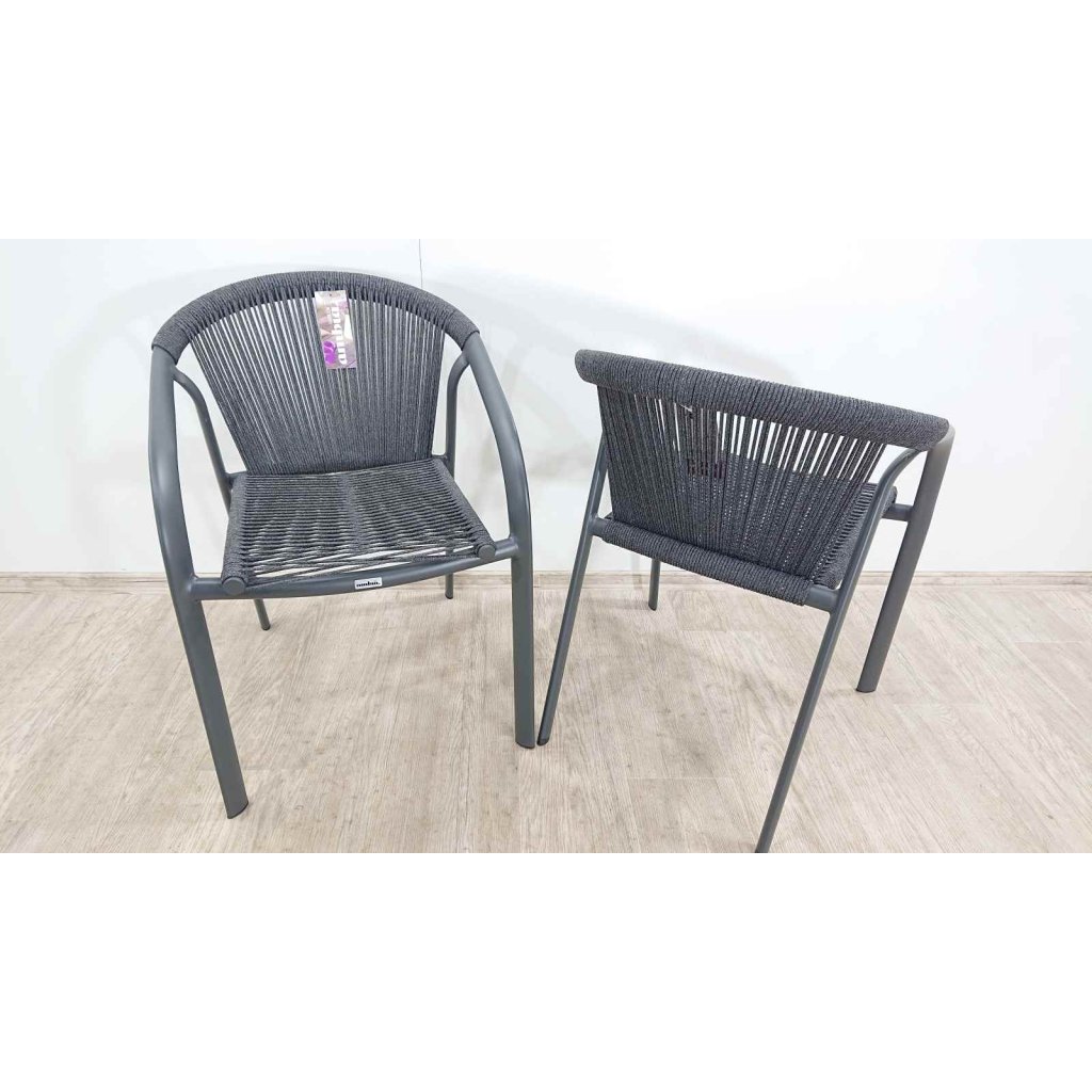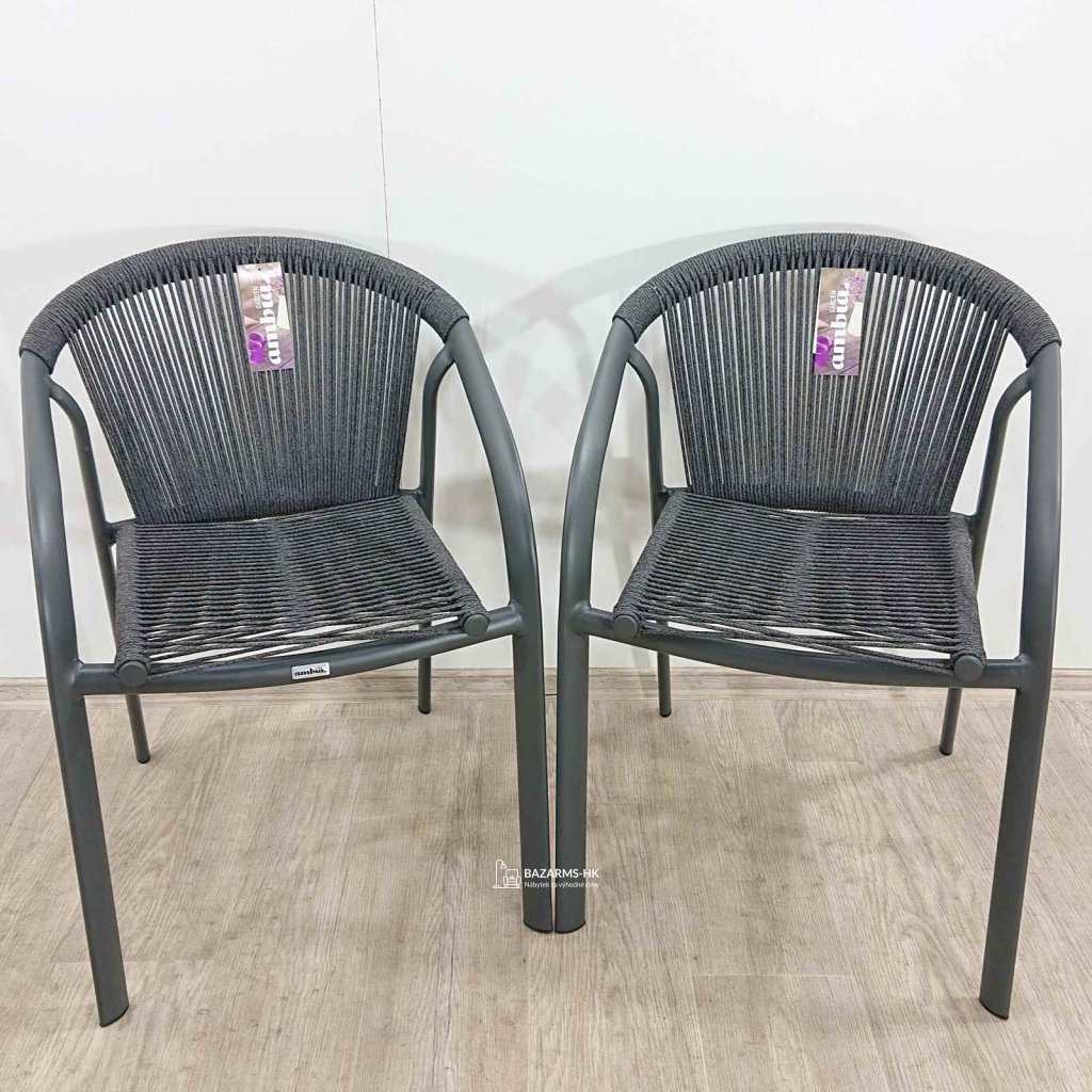Kovové venkovní židle s područkami a s provázkovým výpletem, na kterých se můžete posadit velice pohodlně. Provázky nijak netlačí, takže si můžete v klidu vychutnat venkovní posezení. Výhodou je, že jsou židle stohovatelné. Antracitová barva dodává moderní vzhled.