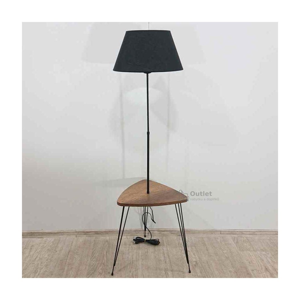 Designová stojací lampa, která "roste" ze stolku, kam si můžete odložit brýle, knížku či oblíbenou kávu. Skvěle se hodí do obývacího pokoje k pohovce nebo ke křeslu. Stínítko lze naklápět. Retro lampy se vrací do módy a těší se velké oblibě.