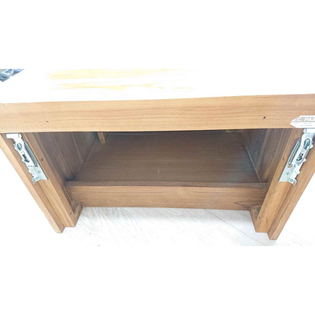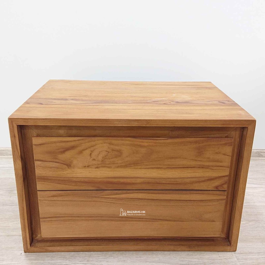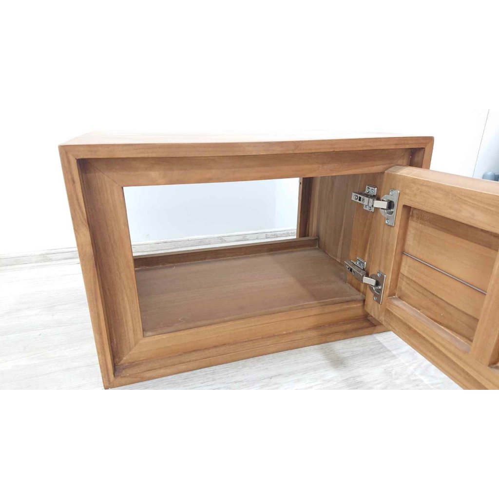 Úžasná koupelnová umyvadlová skříňka, která povznese celou koupelnu na vyšší úroveň. Je to opravdu krásný kousek. Skříňka je určena k zavěšení na stěnu. Masivní teakové dřevo je výbornou volbou do seversky laděných i boho interiérů. Dvířka jsou opatřena tlumeným dovíráním.