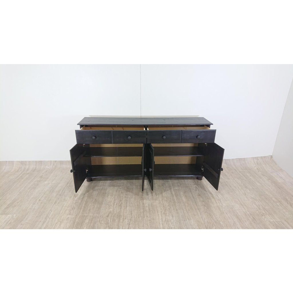 Tmavě hnědá čtyřdveřová komoda z masivního borovicového dřeva Storaa Ella