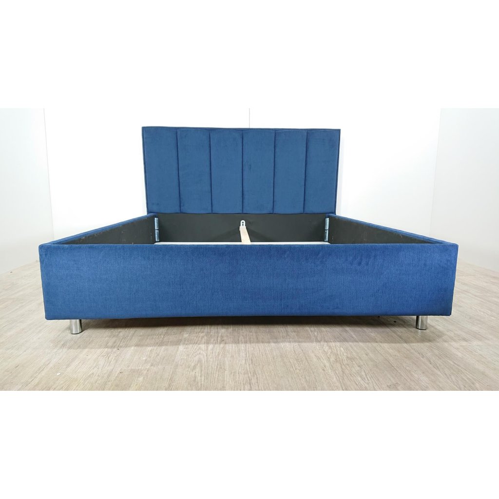 Tmavě modrá dvoulůžková postel s roštem a úložným prostorem ProSpánek Wega, 180 x 200 cm.