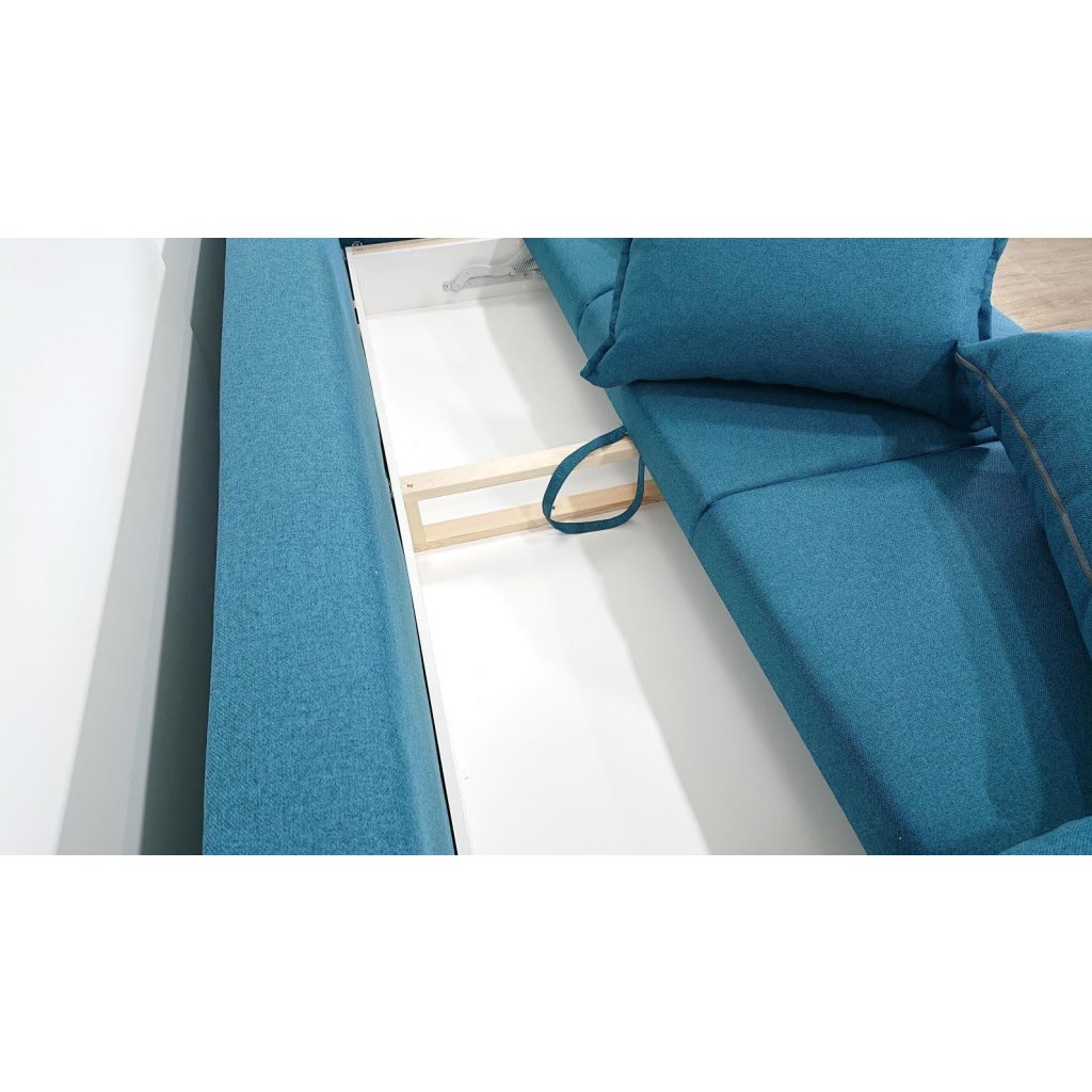 Tyrkysová rozkládací pohovka s úložným prostorem Mazzini Sofas Ancolie, 215 cm.