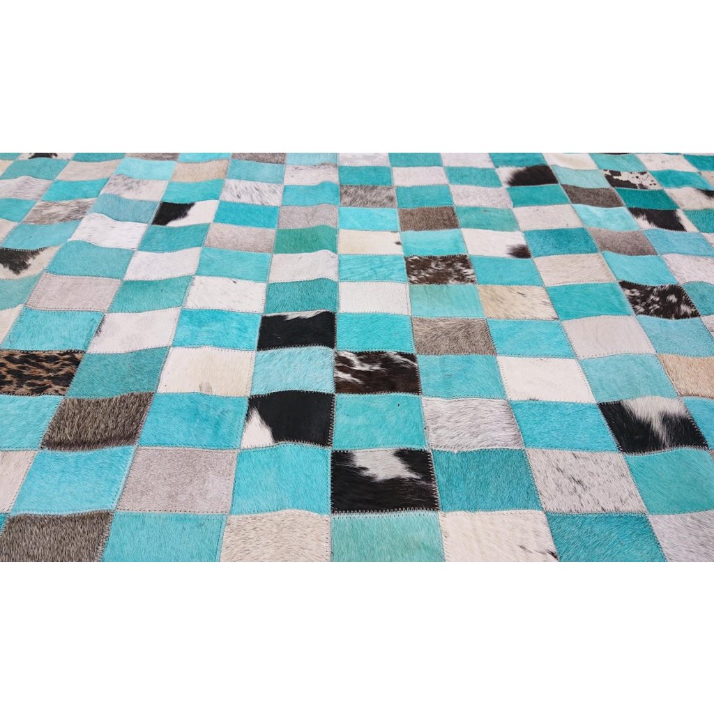Tyrkysový / šedý kožený koberec 140 x 200 cm NIKFER.