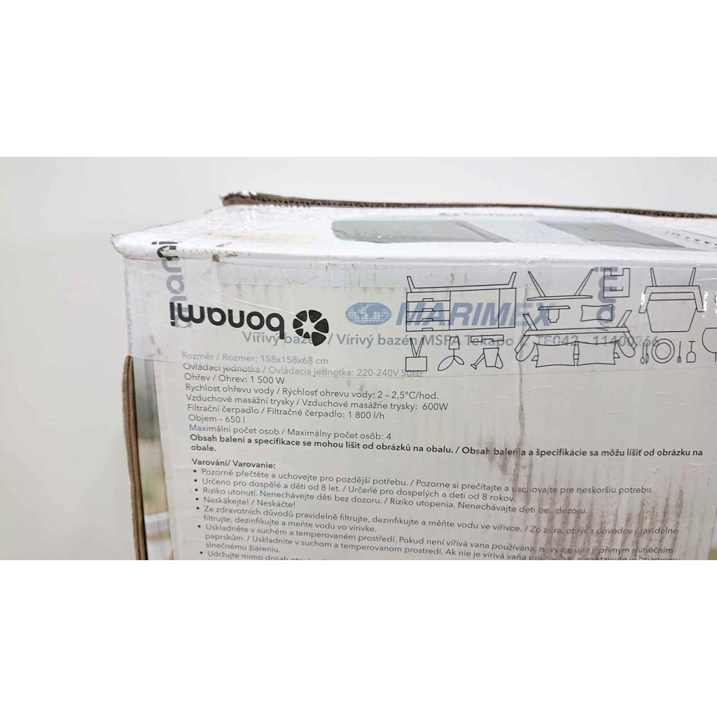 Rozměry: 158 x 158 cm, hloubka 68 cm, objem 650 l