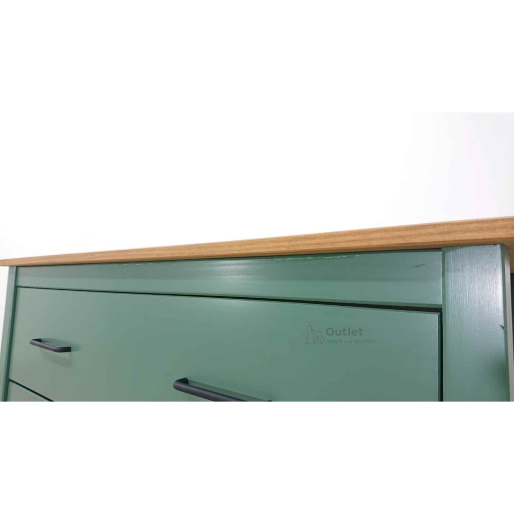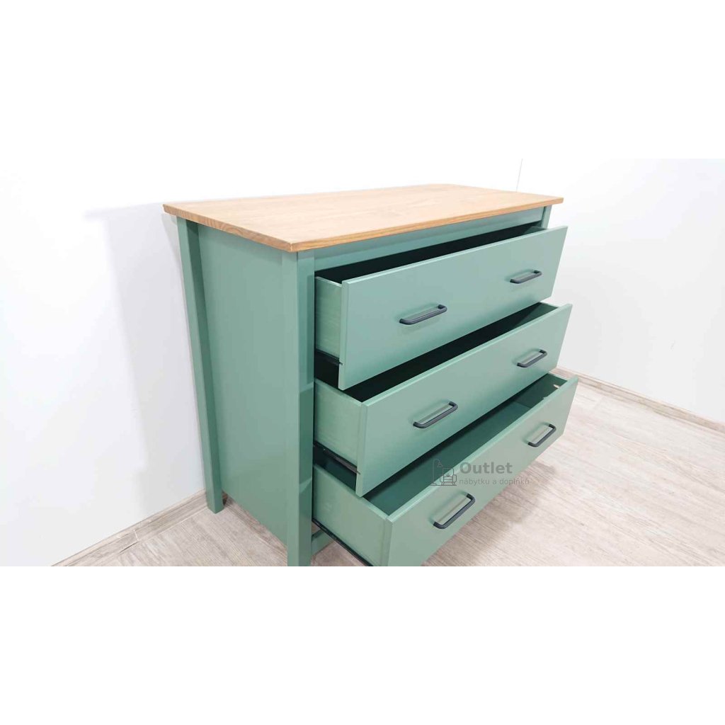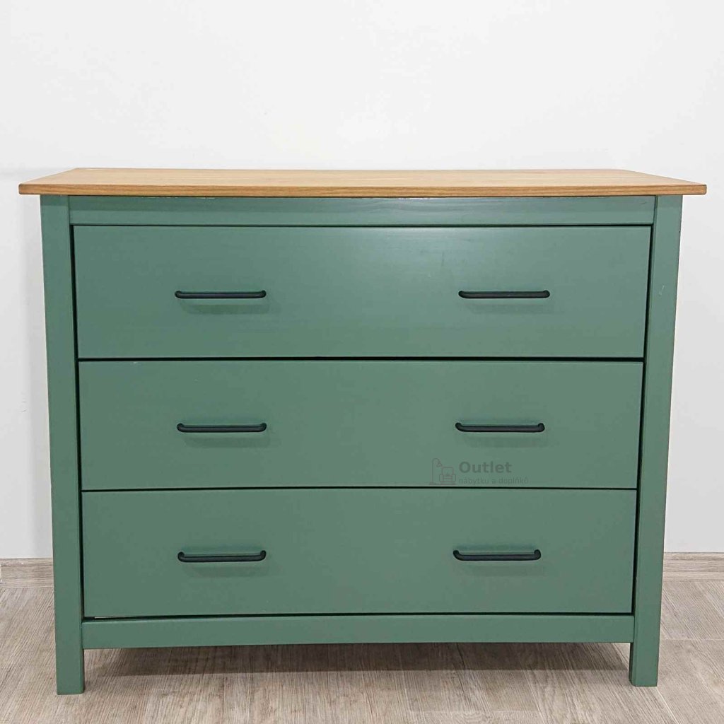 Zelená šuplíková komoda v příjemném venkovském stylu vás doslova nadchne. Tato dřevěná komoda ladně kombinuje krásnou zelenou barvu a dřevo, doplněné o kovové úchytky. Komoda se hodí i do seversky zařízených interiérů. Tato komoda je vhodná pro uložení oblečení.
