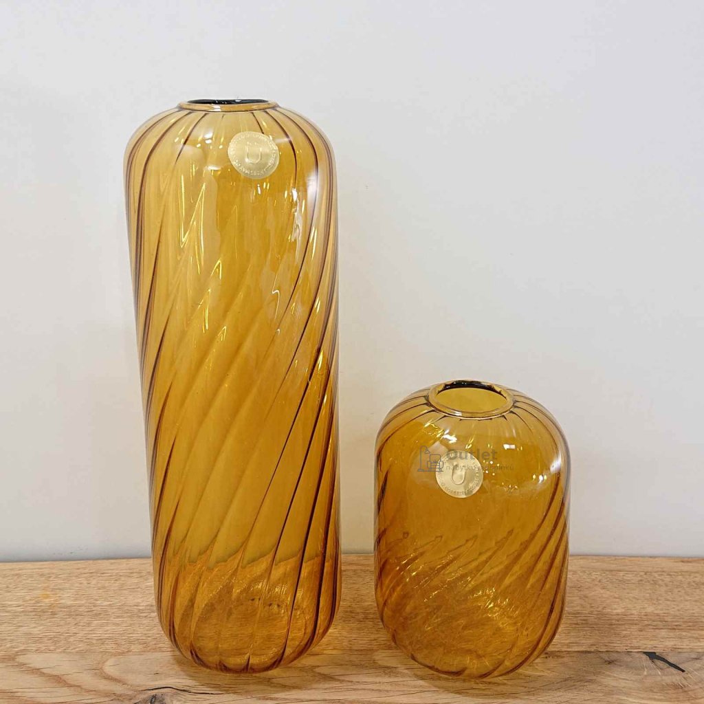 Ručně vyrobené skleněné vázy v krásné okrově žluté barvě.